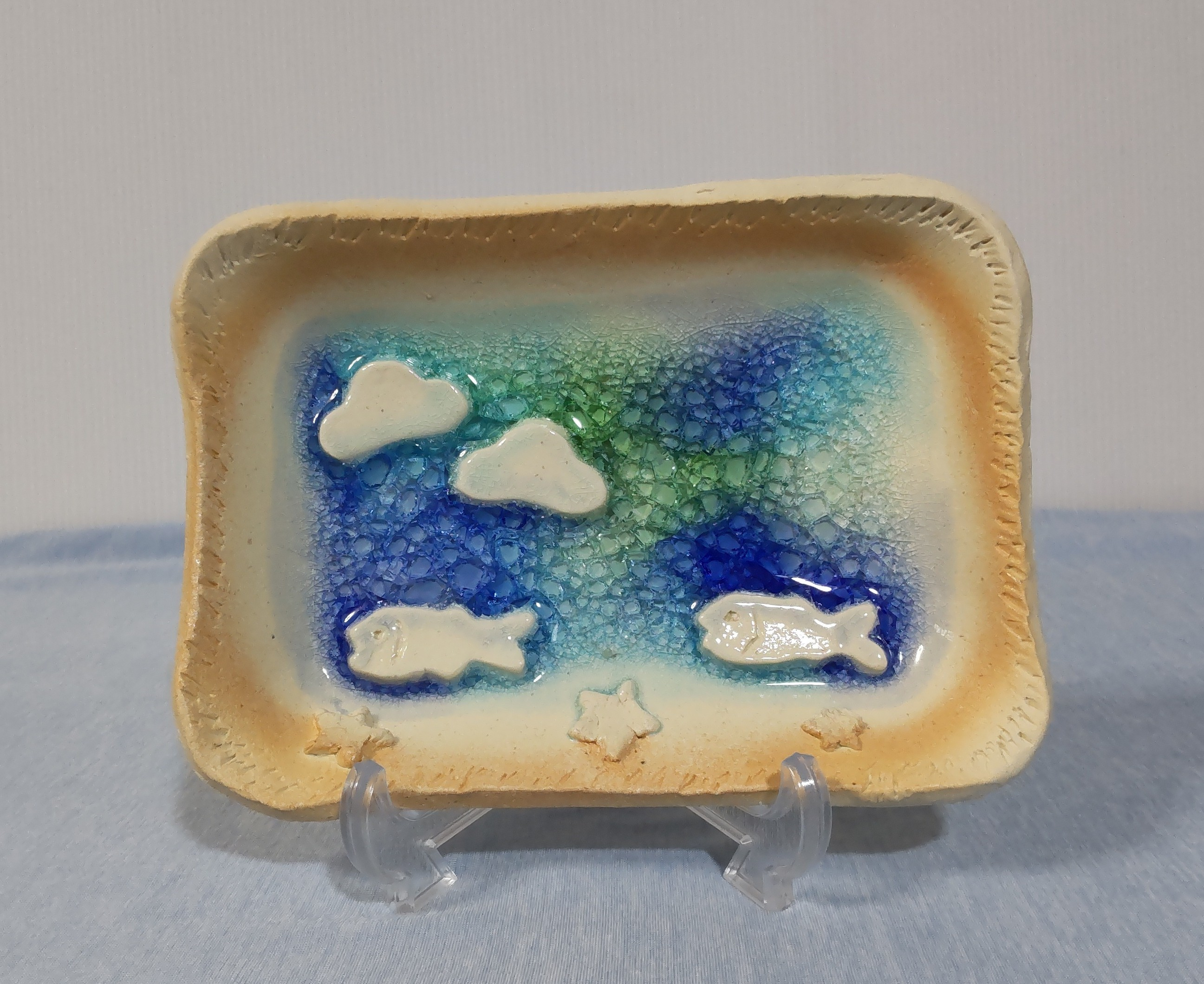 青い空の雲と、青い海の魚のお皿、すてきですヾ(o´∀`o)ノ