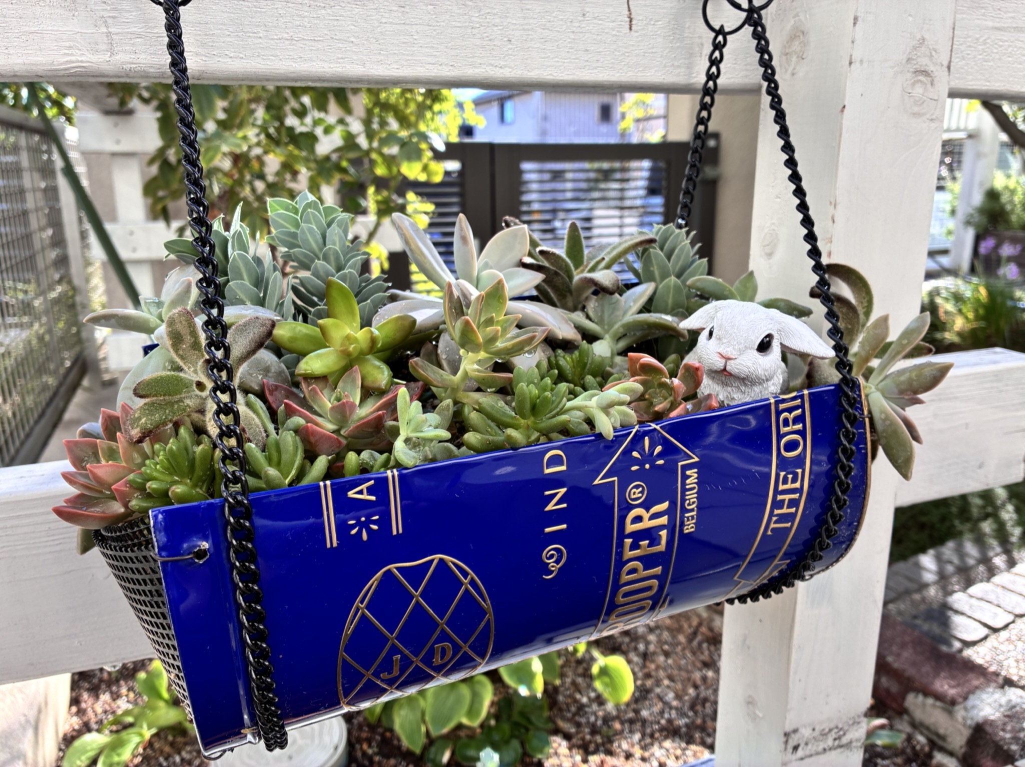 トップ > DIYアワード2025 > キャンペーン > 空き缶で多肉植物の寄せ植え ぽんちゃん 2025/10/06 15:57 空き缶で多肉植物の寄せ植え ■作品内容 紅茶の空き缶を使いました ■こだわりポイント お気に入りの缶なので、あえて何も塗らず加工せずにそのまま使いました! 底と蓋を外しU字にして両側には鉢底網を取り付けて水はけを良くしました。 カインズさんのチェーンを両側から下げるのですが、缶がすべて落ちてしますので底に穴を開け缶とチェーンをワイヤーで固定してあります。 これから紅葉して色が鮮やかになるのが楽しみです! グリーン部門【DIYアワード2025】 くらしに、ららら。部門【DIYアワード2025】 いいね 共有する 共有する X LINE リンクをコピー コメントする 0 件の返信 (新着順)
