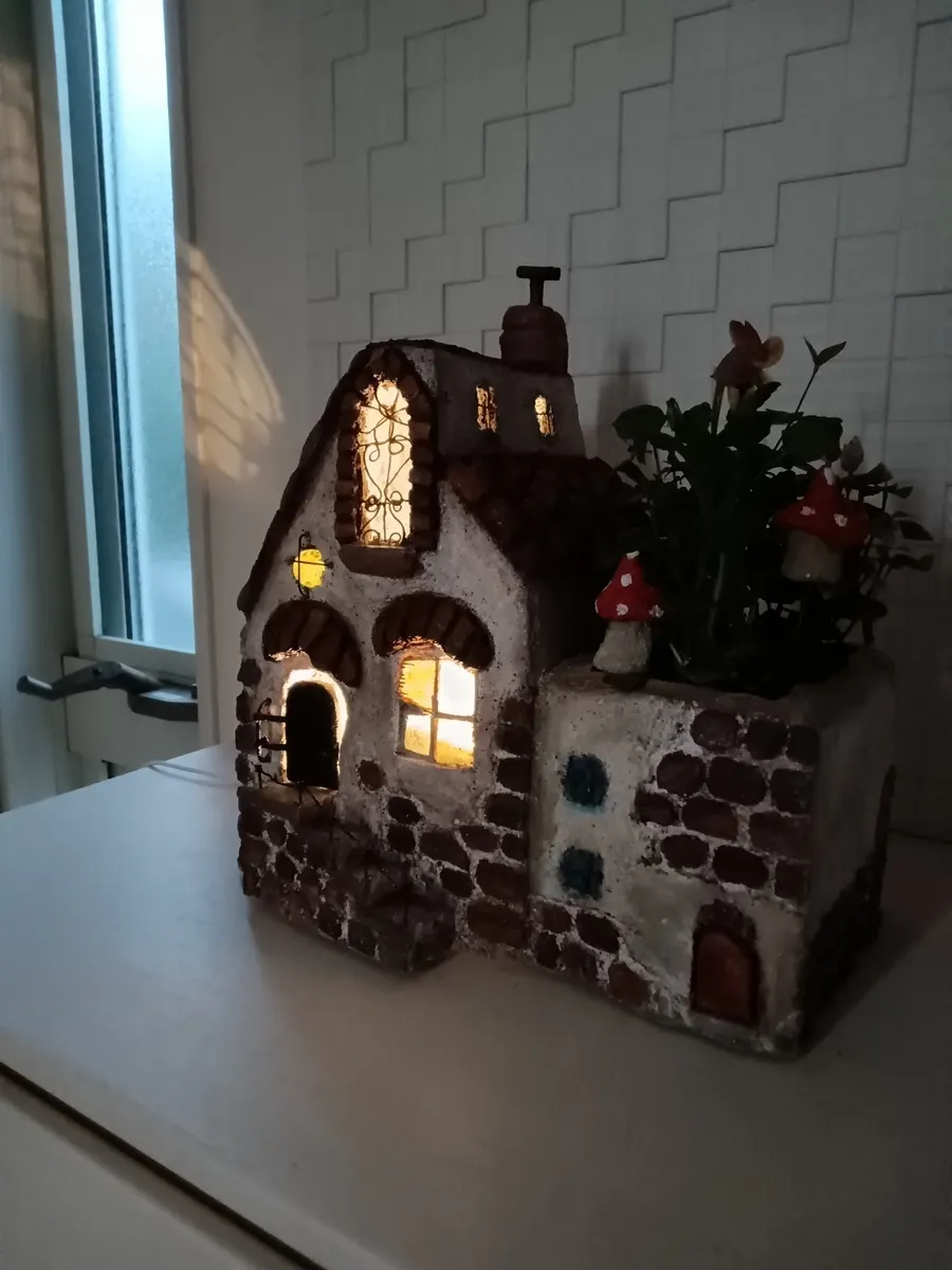 夜🌠はライト🔦が光って植物も入れられてお家が可愛い❤です。