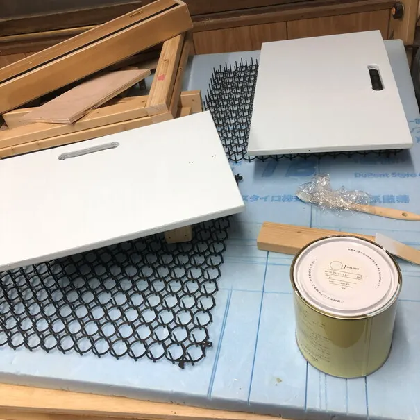 水色で塗装した後、水性ウレタンニスを塗布しました。