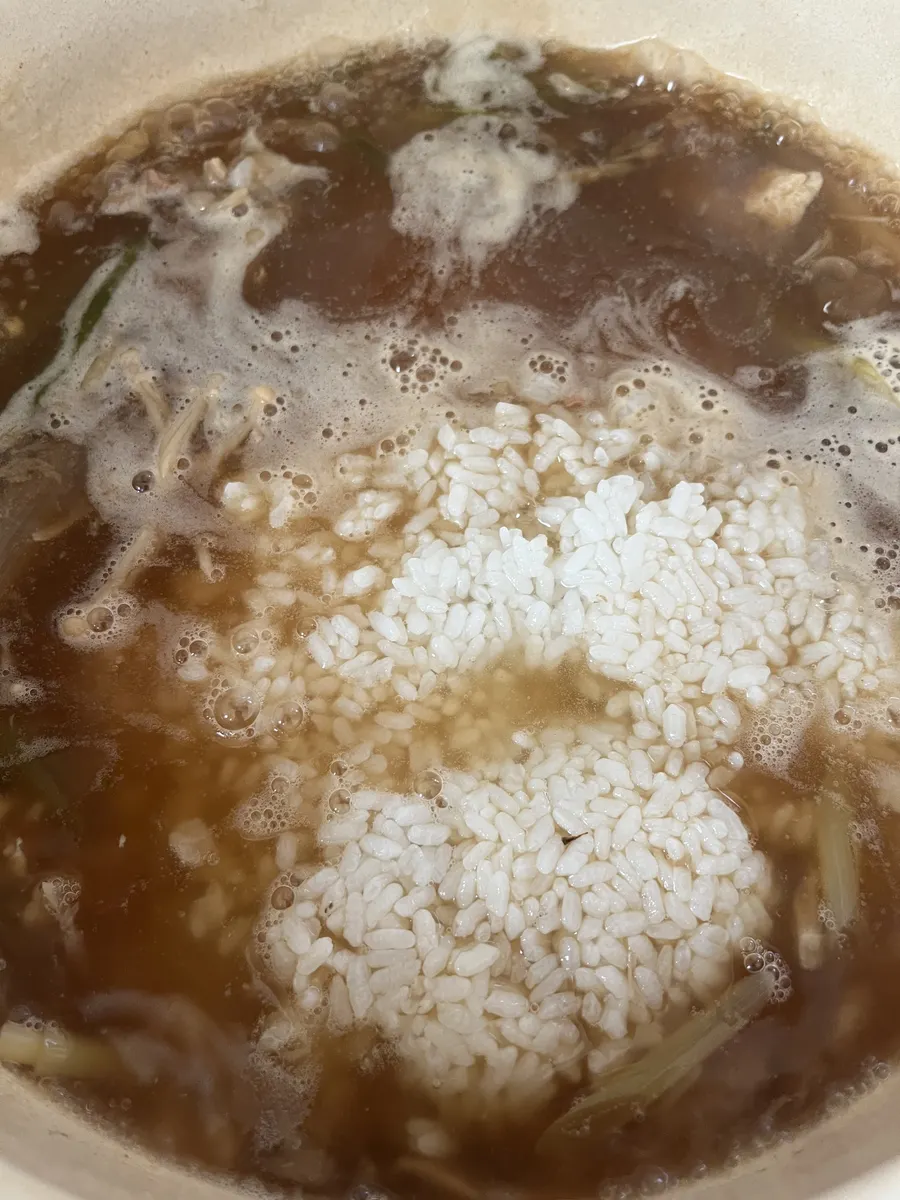この投稿を見て私も今夜はレンジポットで雑炊にしました。