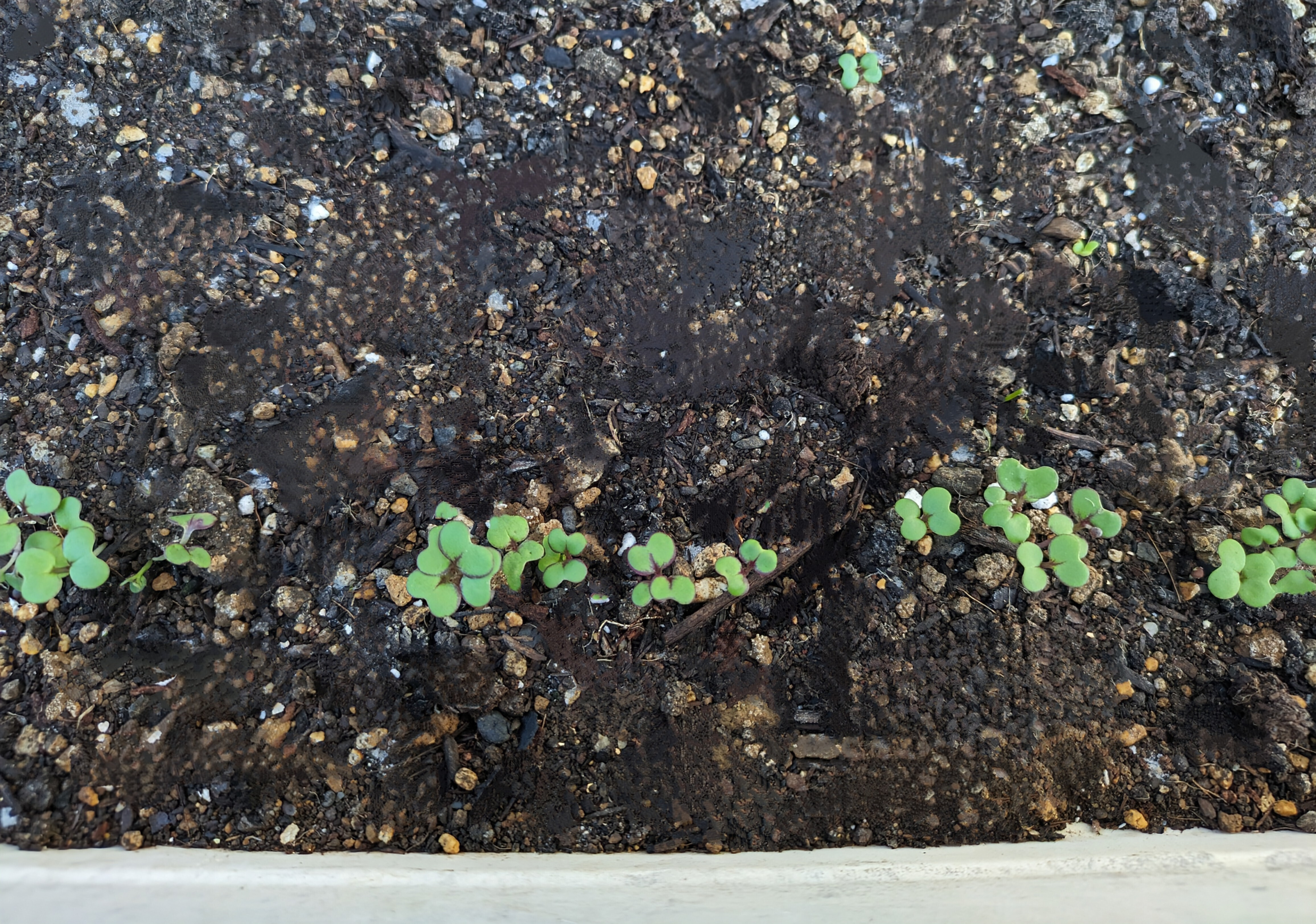 トップ > グリーン > 高菜の芽🌱 suimo 2023/12/21 08:49 高菜の芽🌱 先月、遅いとは思いつつ高菜の種を蒔きました。10月までが適期と袋に書いてありましたが、今年は温かだし11月でも出来るといいなと思い撒いてみました。 約1ヶ月かかりましたが、やっと芽が出ました\(^o^)/2列蒔いたのですが1列は出ないのかこれからなのか?🤔ですが、高菜の漬物が好きなので寒冷紗などで保温をして収穫目指します(^^♪ いいね 共有する 共有する X LINE リンクをコピー コメントする 3 件の返信 (新着順) ミュートしたユーザーの投稿です。 投稿を表示 シダーローズ 2023/12/21 11:18 高菜は虫付きにくそうですけど、優しい虫好きのsuimoさん、きっと虫が付いても取れないだろうから狙わないであげてほしい。 いいね 返信する ミュートしたユーザーの投稿です。 投稿を表示 suimo 2023/12/21 18:09 シダーローズ ありがとうございます(^^) そうですよね😅高菜はアブラナ科なので、食べていい野菜の方へ移動してもらいましょう🐛寒いので付いても少ないですよね。 いいね 返信する ミュートしたユーザーの投稿です。 投稿を表示 ダンボ 2023/12/21 10:42 愛情いっぱいに育ててください! いいね 返信する ミュートしたユーザーの投稿です。 投稿を表示 suimo 2023/12/21 18:07 ダンボ ありがとうございます(^^) よく勉強しないと、高菜は初めてなので😊 いいね 返信する ミュートしたユーザーの投稿です。 投稿を表示 べるん 2023/12/21 09:57 可愛い芽が出て、良かったです💚 保温の中での成長が楽しみですね🎶 いいね 返信する ミュートしたユーザーの投稿です。 投稿を表示 suimo 2023/12/21 18:06 べるん ありがとうございます(^^) 買った高菜が美味しかったので、家でたくさん穫れたらなぁ😃と種を買いました。今度は間引きですね🌱 いいね 返信する