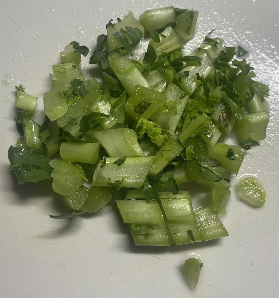 あ、軌道修正で調理工程に戻すが、葉物加え〜の✨
