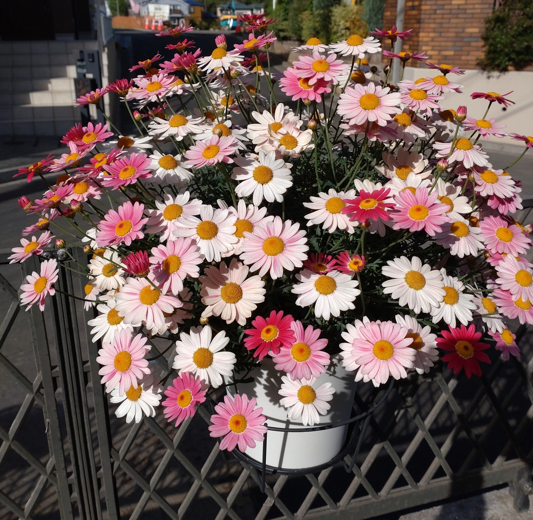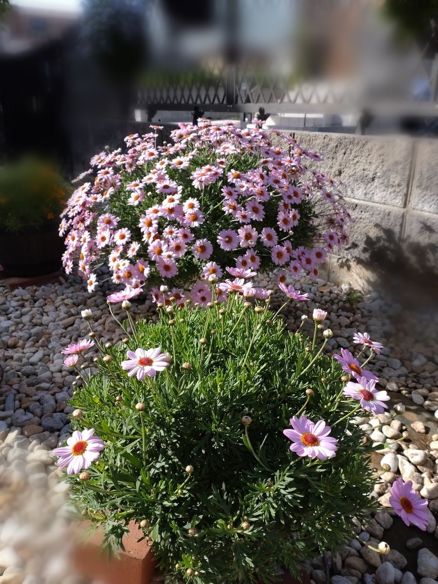 私も 同じ色合いの『シンプリーコーラル』と言う名前のマーガレットを今年になって買いました。お気に入りです💕 ミッチーさんは 押し芽をされたそうで、私もやってみようかな😊 ちなみに 普通の白のマーガレットを押し芽にしたのが以前投稿し ミッチーさんにもイイねしてもらった『マーガレットのドレス』で、まだ2年目なんですが巨大化しました😅