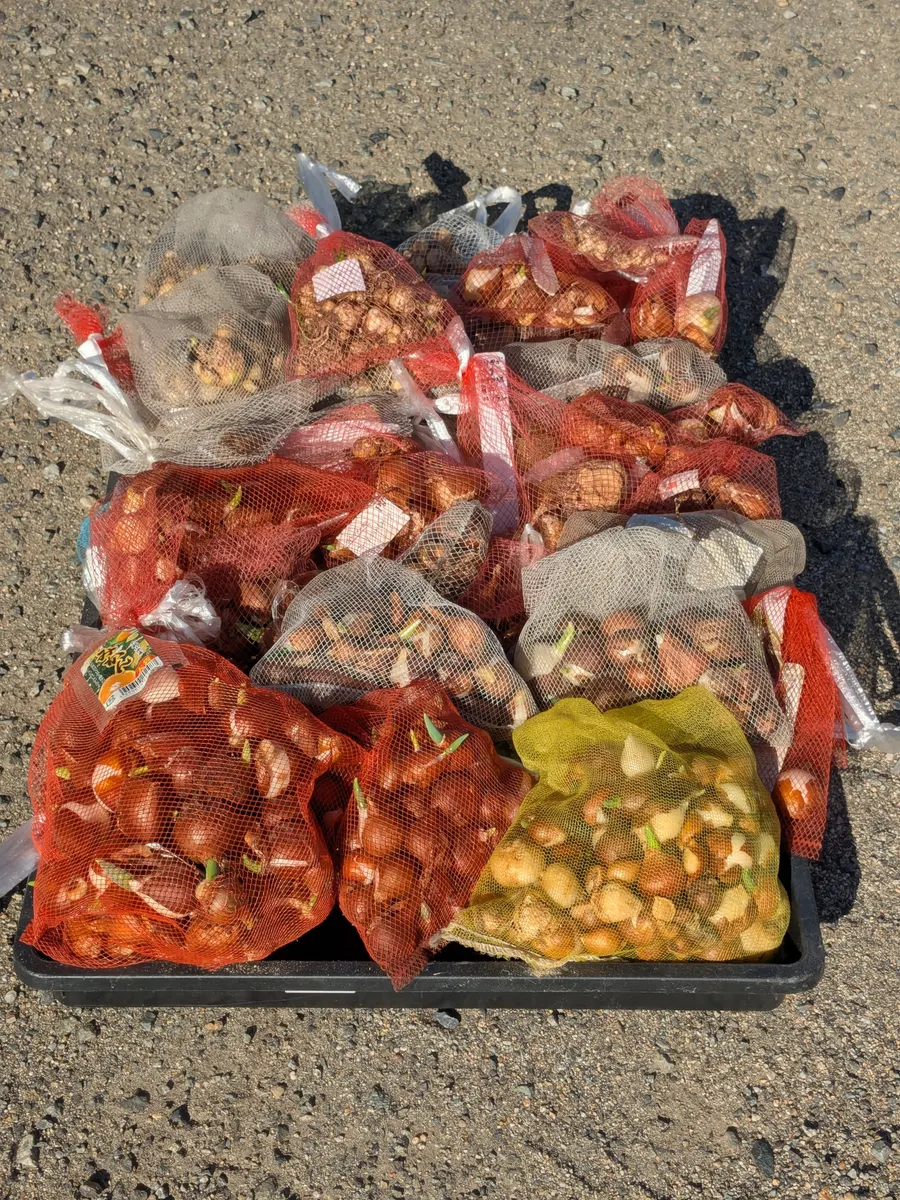 投稿を表示大量の球根ですね😳植え付け大変だと思いますが花🌷が咲いたイメージを頭にうかべてワクワクしそうです😊