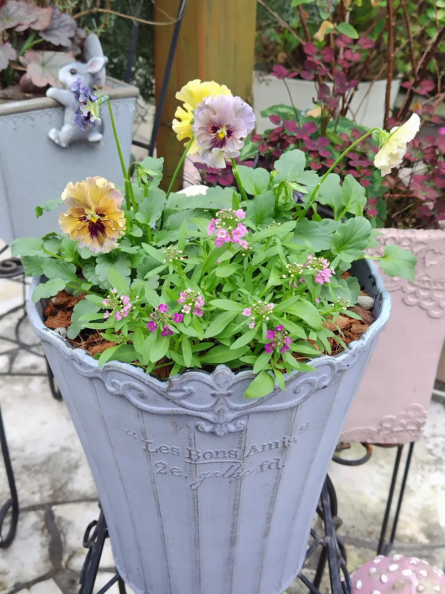 トップ > グリーン > ガーデニング > 冬の寄せ植え④ビオラ「レディ」 purimura 2025/11/17 20:51 冬の寄せ植え④ビオラ「レディ」 繊細なフリルと色変わりが素敵な「レディ」 昨年は同じ鉢にマイガールも一緒に植えましたが、春にはもりもりになったので、今年はレディ2株とアリッサムだけにしました😊 春になるのが楽しみです❣️ 寄せ植え ビオラ レディ アリッサム いいね 共有する 共有する X LINE リンクをコピー コメントする 0 件の返信 (新着順)