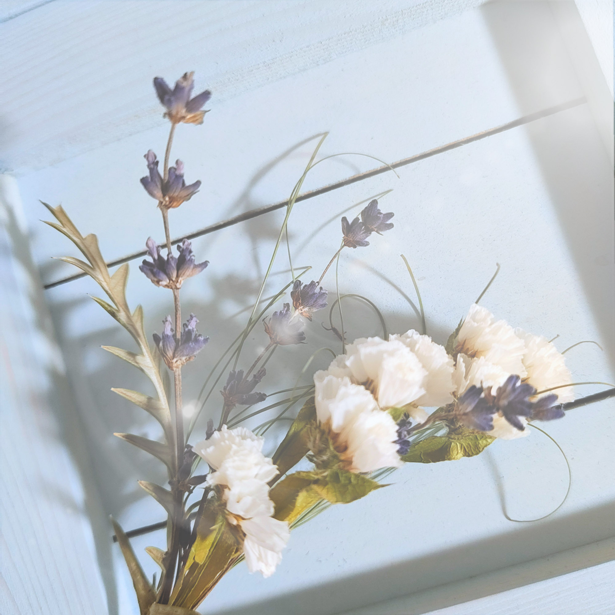 ラベンダーは、たくさんいただいてた中からちょんちょんとカット✂️して、その他はドライフラワーのWSでの余りを使いました☺️