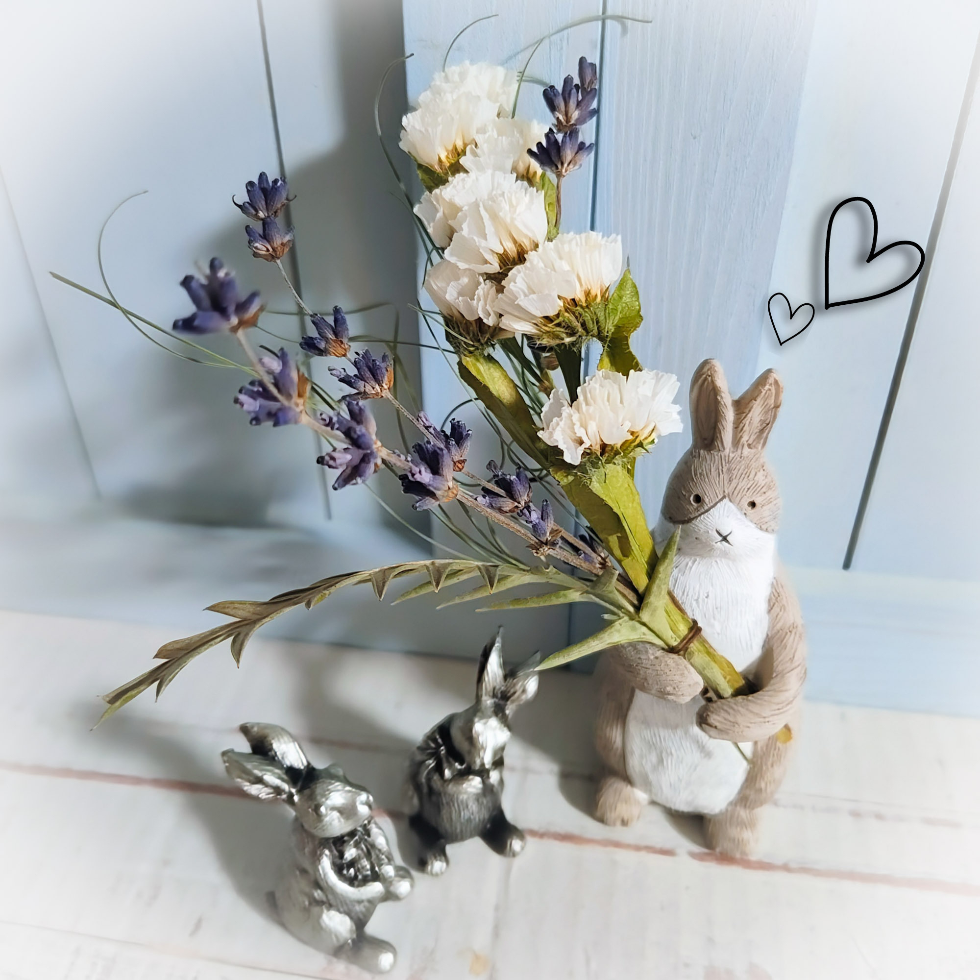 ミニスワッグを付け替えようと思って作ったものが大きすぎて、フレームからはみ出しちゃったので、うさぎ🐰に持たせることにしました😆💦