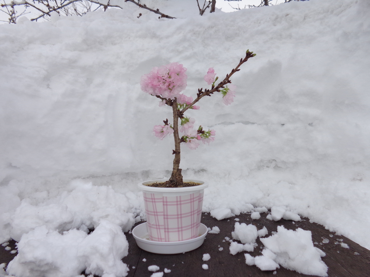 投稿を表示ピンク色のヒラヒラのサクラの花🌸が、綺麗ですね❣️バックの雪に映えますね〜😊✨✨