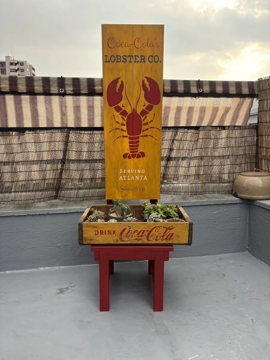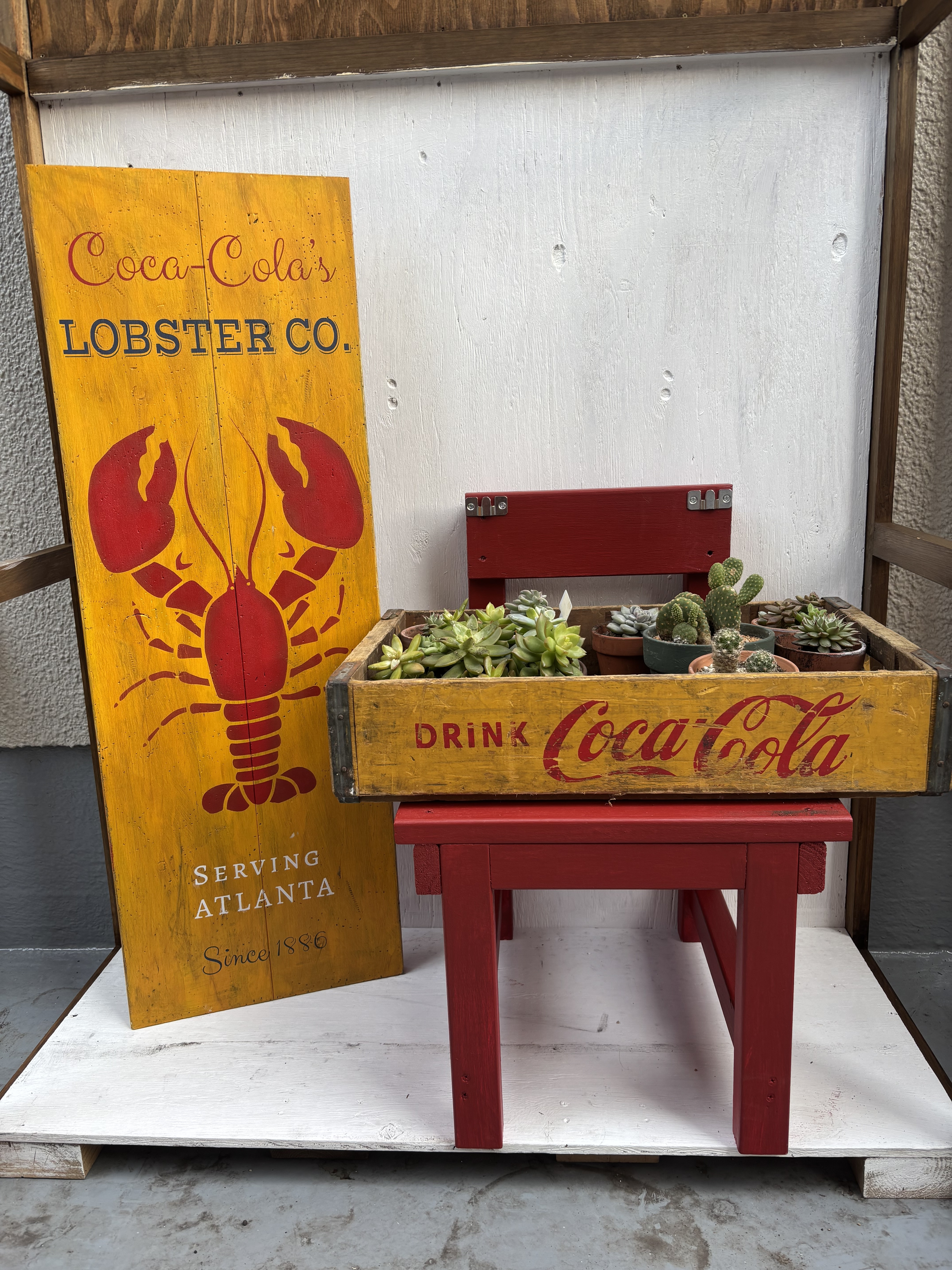 投稿を表示ボードとコカコーラ箱に真っ赤なキッズチェアめちゃ素敵です🤩