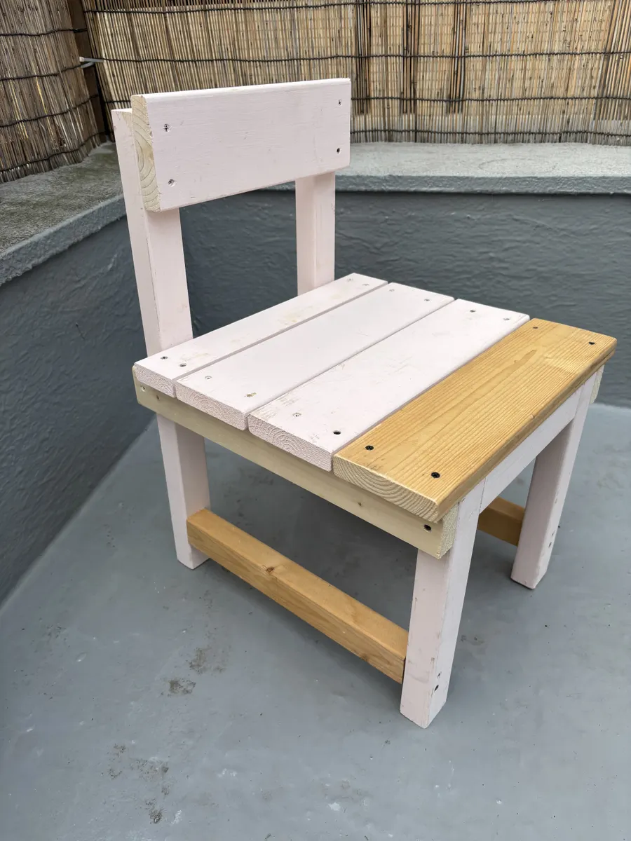 キッズチェアーは以前作ったけど、使い道がなくボード用にサイズを作り変え、色も塗り替えたチェアーです。