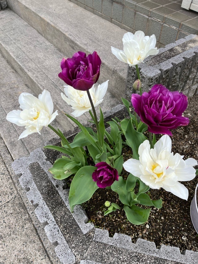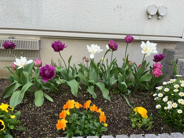 以前、咲いていたチューリップは、花が落ちて一緒に咲いている時がなく残念…