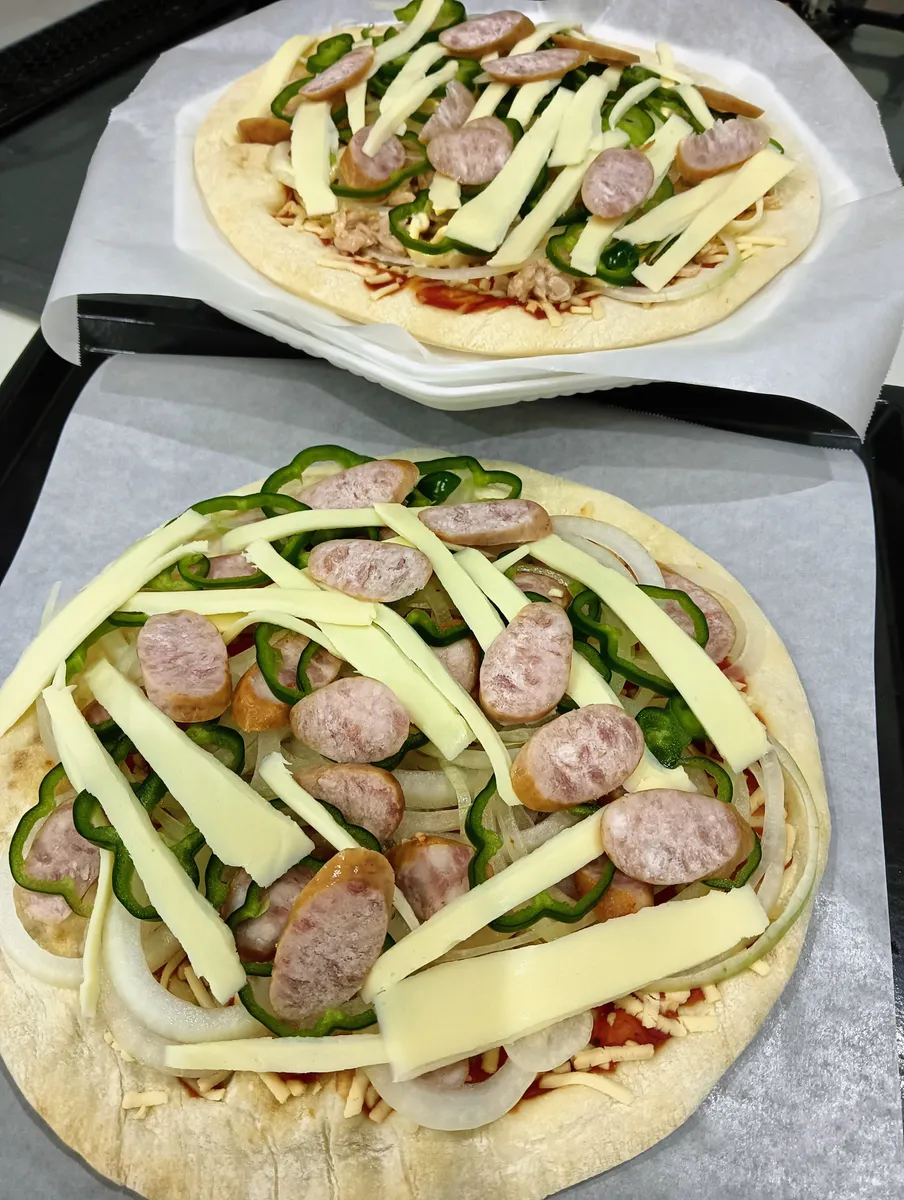 投稿を表示焼く前から山盛りになって美味しそうなpizza😋 pizza屋さんと同じじゃないですかー🤣❤️