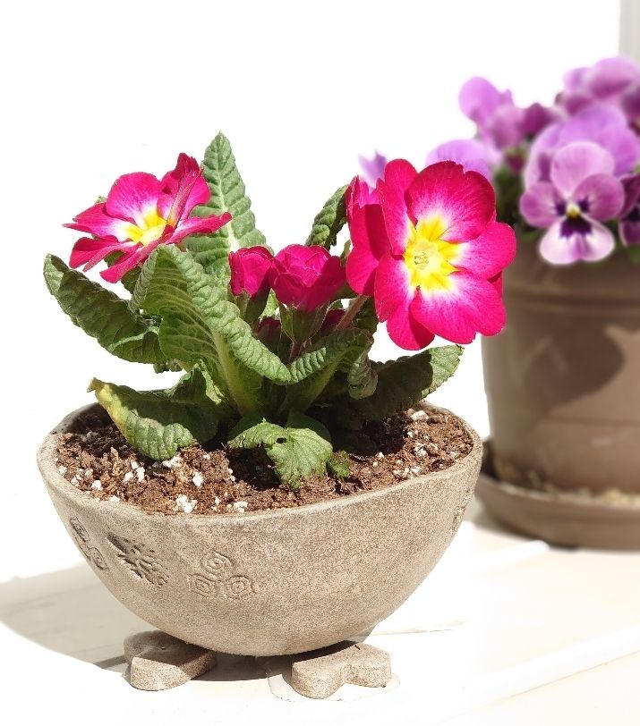素朴であたたかみのある鉢でジュリアンの可憐さが引き立ちますね😍