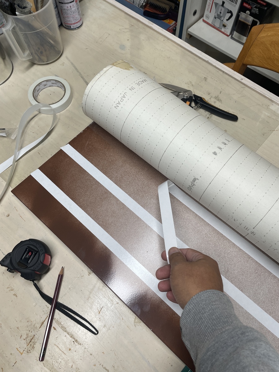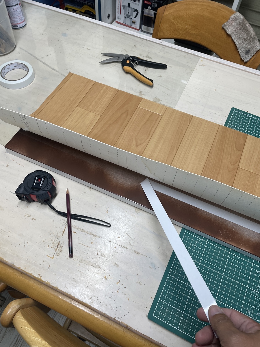サイズは、材料合わせにてカットしていきます。接着は両面テープにて順序良く接着していきます。