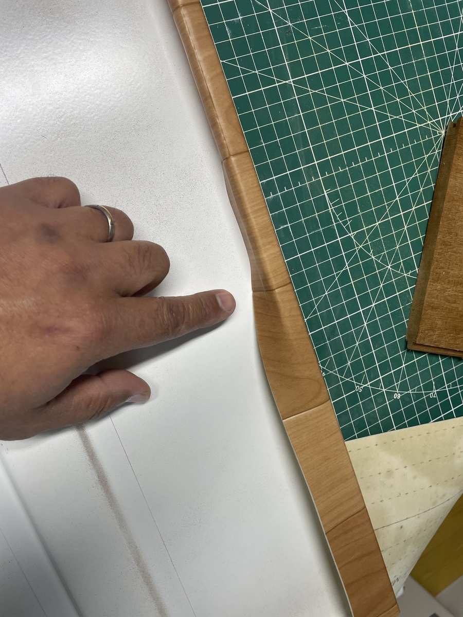 た棚の前面は、折り返しをする為に少し長めにカットしてます。
