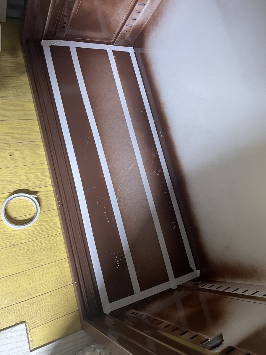 底面は横のラインだけでは接着強度に不安が出て来たので縦のラインにも両面テープを貼り付けました。