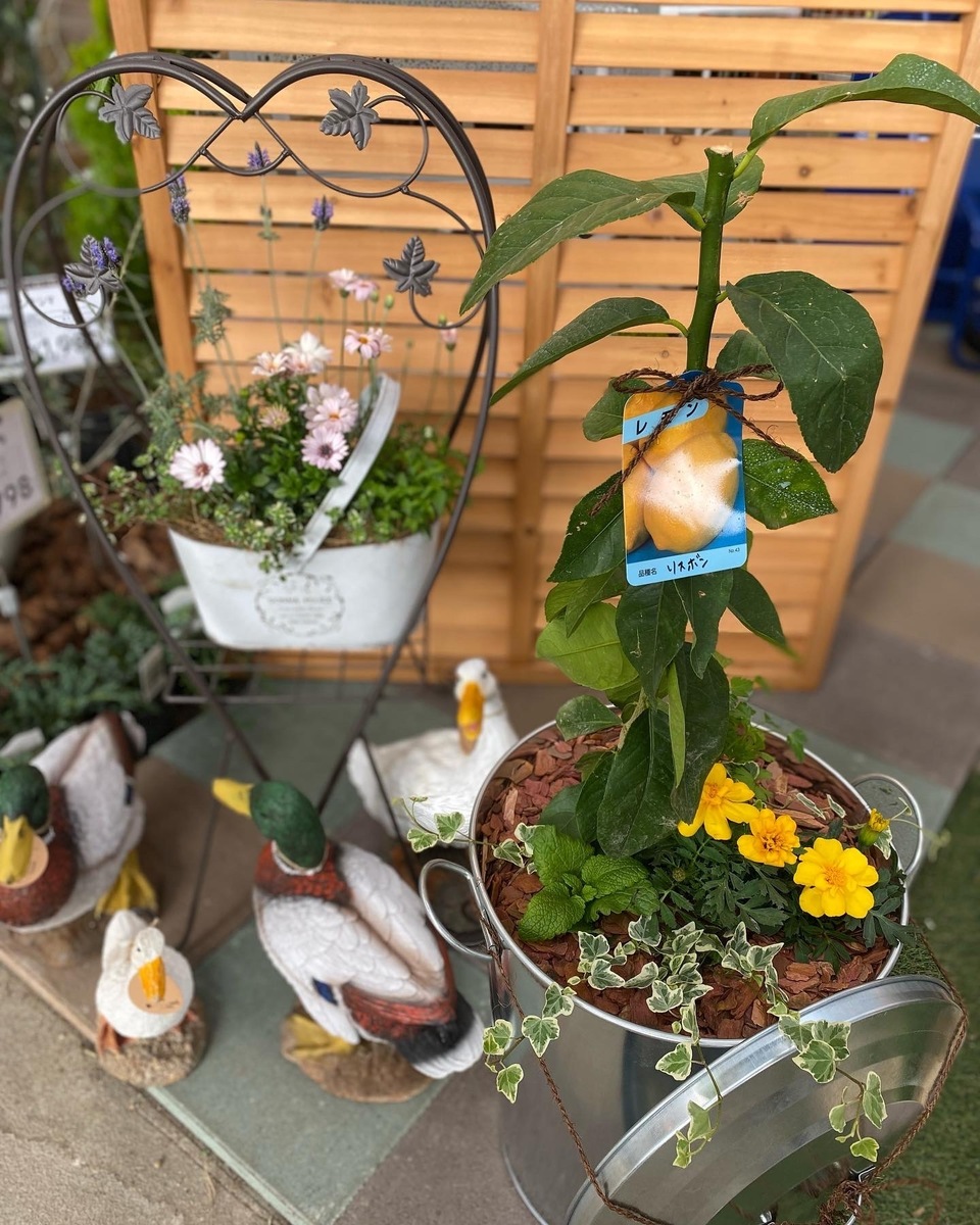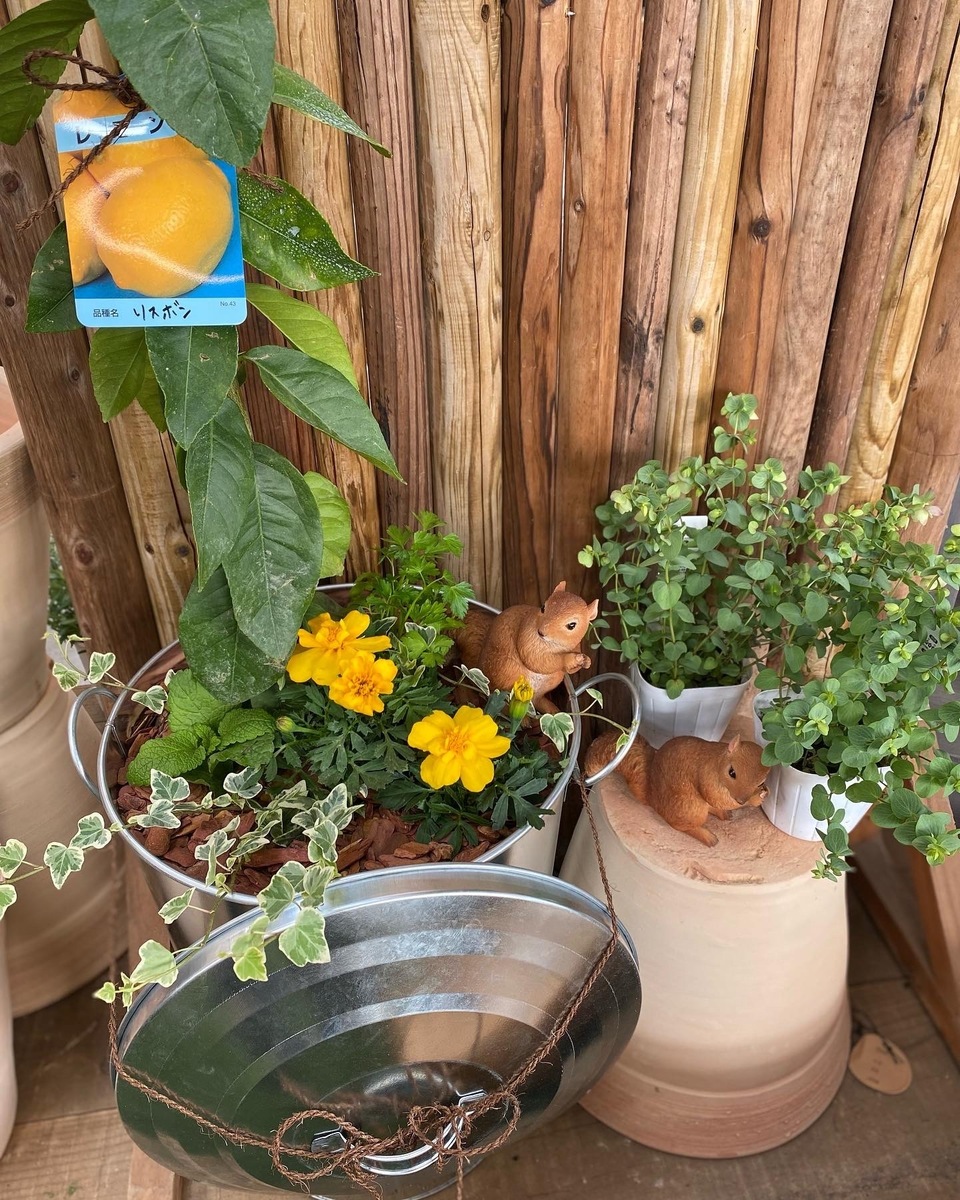 バケツと檸檬🍋と寄せ植えの感じが素敵😊💕👍