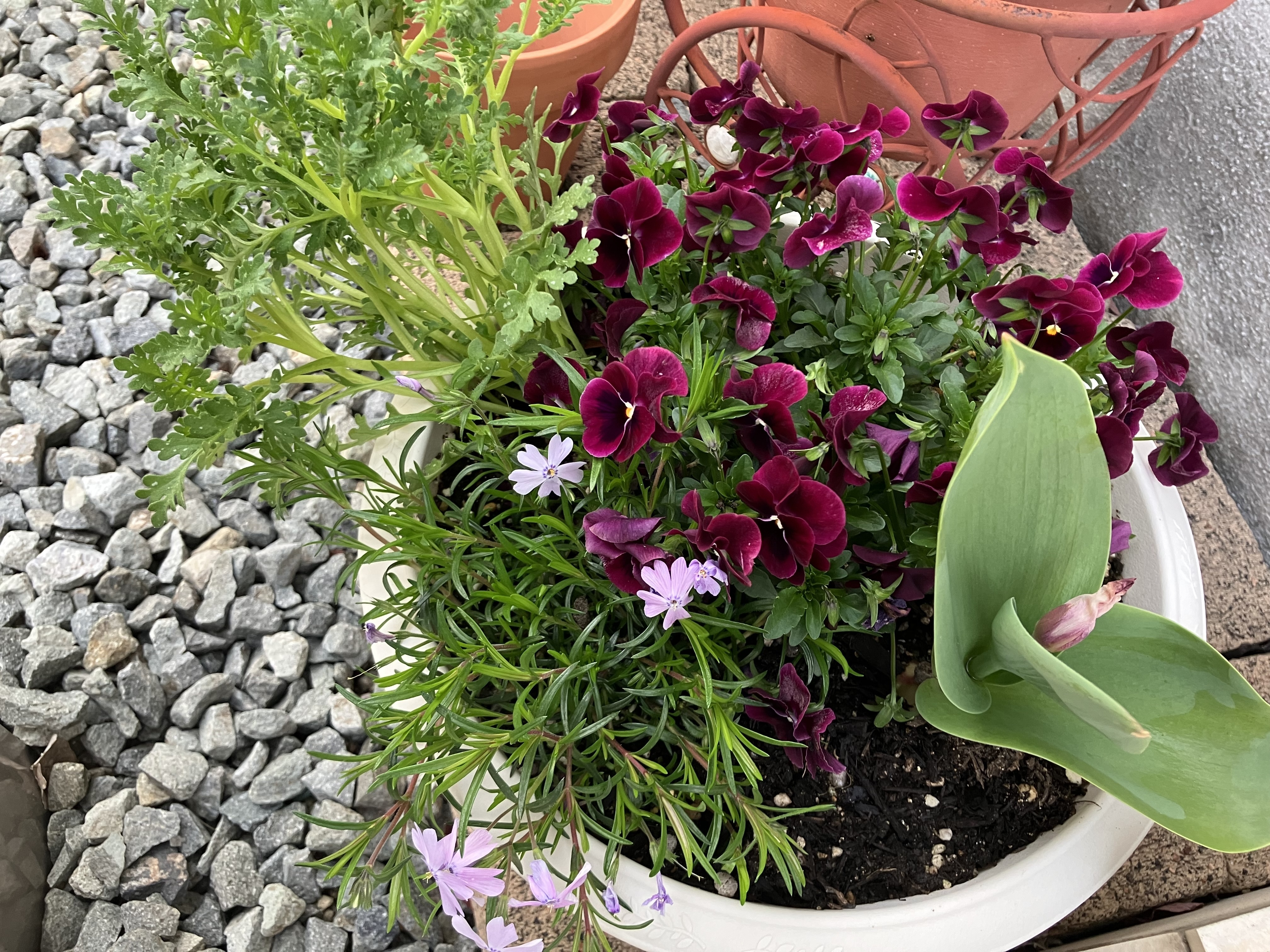 トップ > グリーン > 3月にした寄せ植えバイキング える 2024/04/07 18:17 3月にした寄せ植えバイキング 今日はコーナンで寄せ植えバイキングがあったのですがまだ3月にしたのが元気なので見送りました。 とはいうものの、調子はいまいち💧3月分はチューリップ、芝桜、ビオラ、ネモフィラを植えました。ビオラは一株なのにどんどん育ち順調😊しかし、ネモフィラは葉は伸び続けるが花は咲いてません。チューリップは他に栄養を奪われているのかシワシワ💦同じ日に寄せ植えした義妹のチューリップは今咲いてるらしいです。ネモフィラが伸びすぎてバランスが悪いので思い切って移し替えました。無事育ちますように。 いいね 共有する 共有する X LINE リンクをコピー コメントする 0 件の返信 (新着順)
