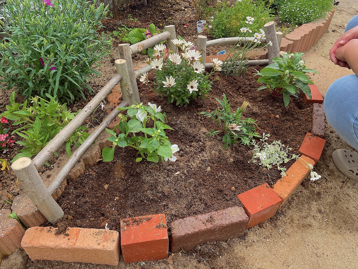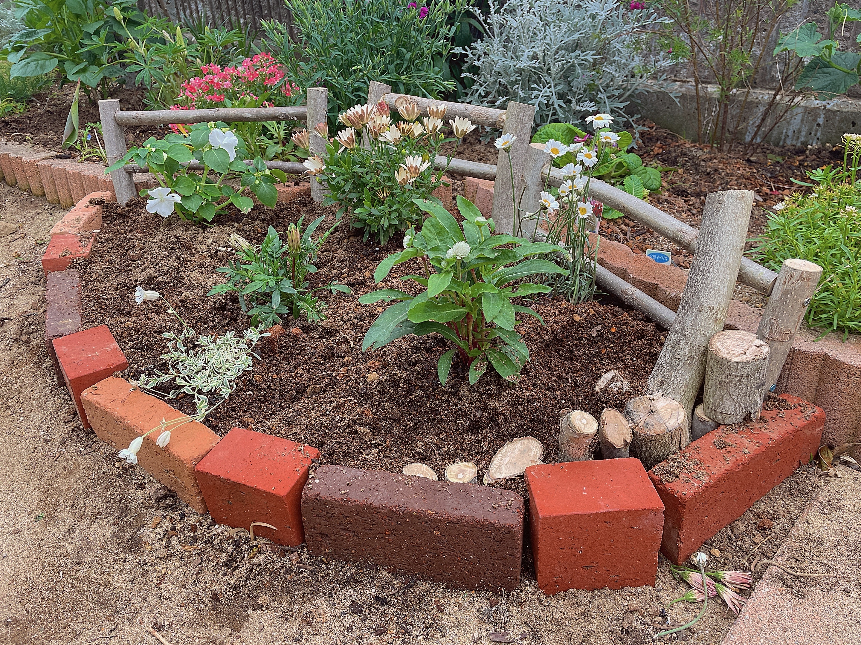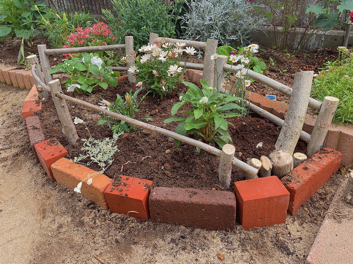 今日は奥さんがガーデンに余っていたレンガを使って追加のガーデンを作ったので