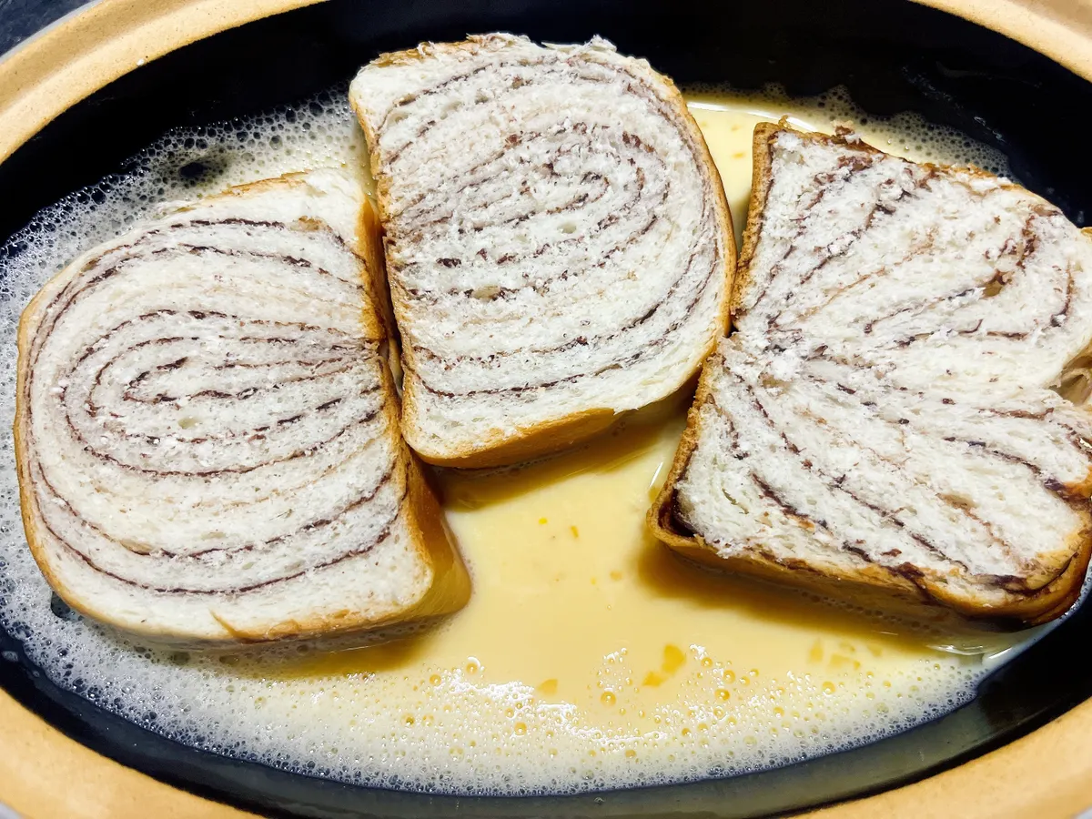 いつも食パンで作っていましたが、マーブルのチョコパンで作っても美味しそうですね❤️