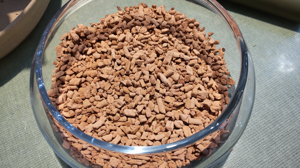 まず、根腐れ防止のゼオライトを底に薄く敷き詰めますね。