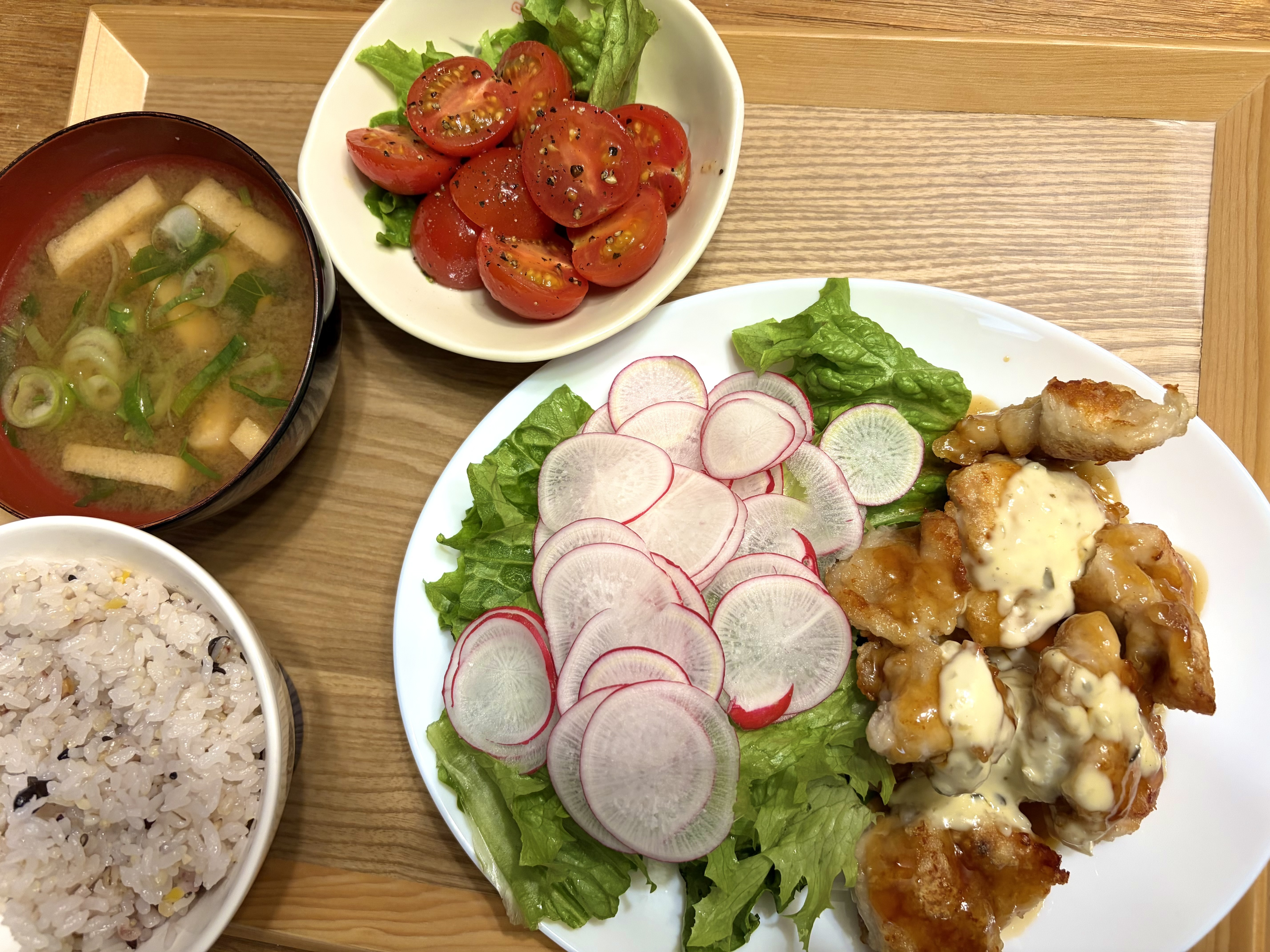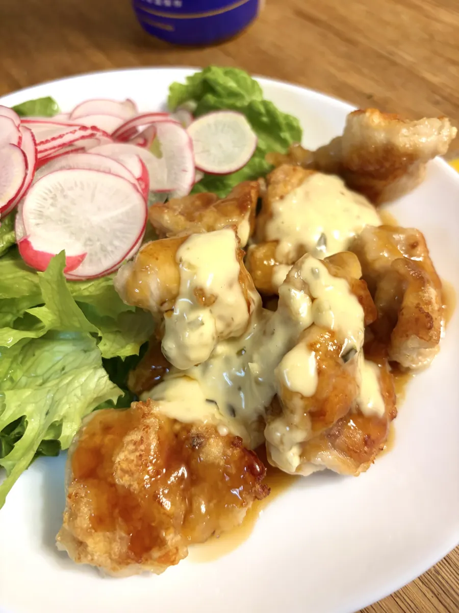 タレがしっかり絡んだチキン南蛮、美味しそう〜😋🎶