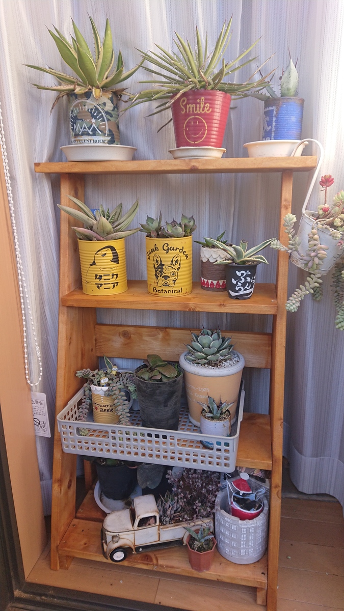 投稿を表示この作品は棚板なので、色々な大きさの植物が乗せられて良いですね。