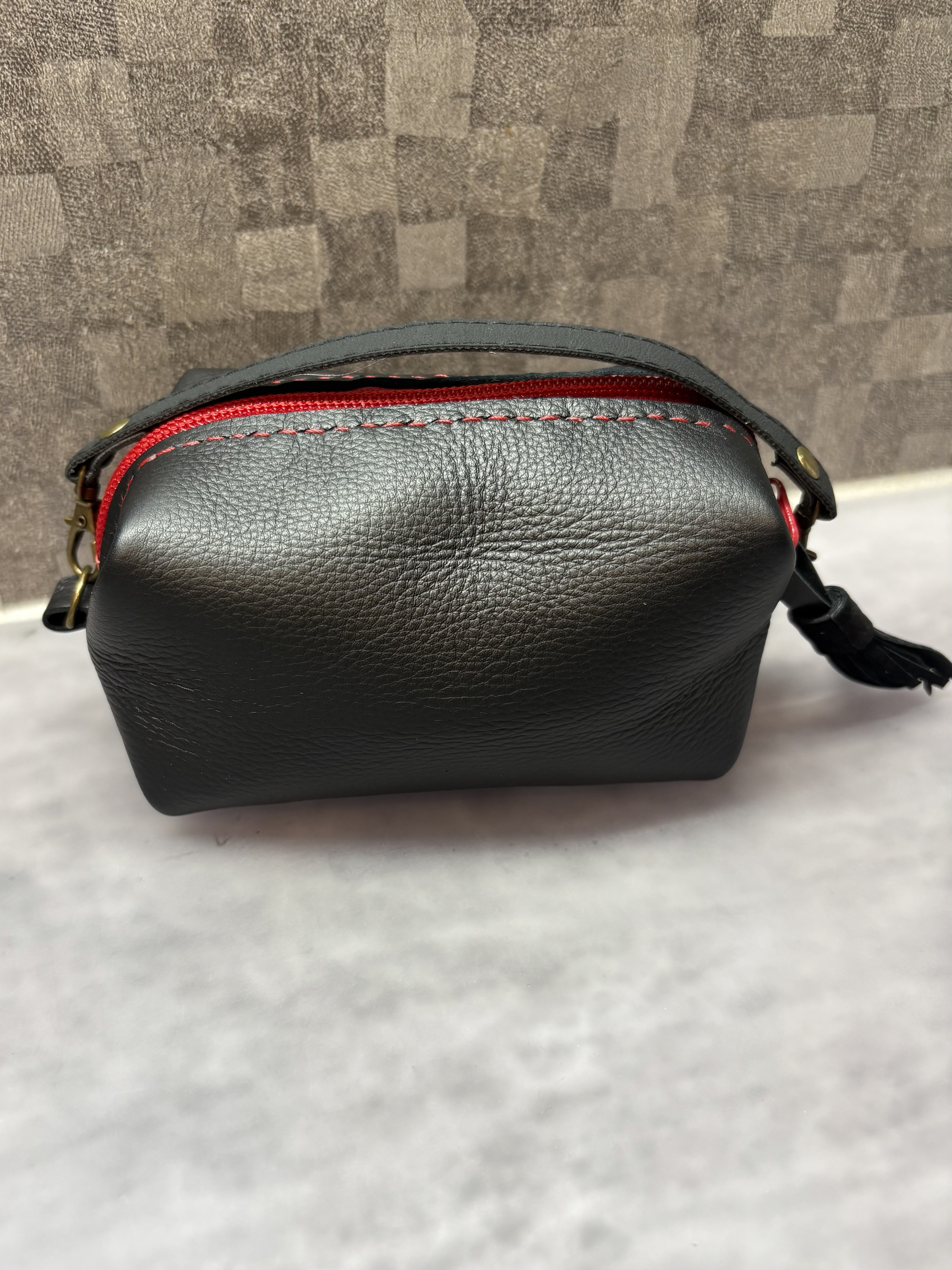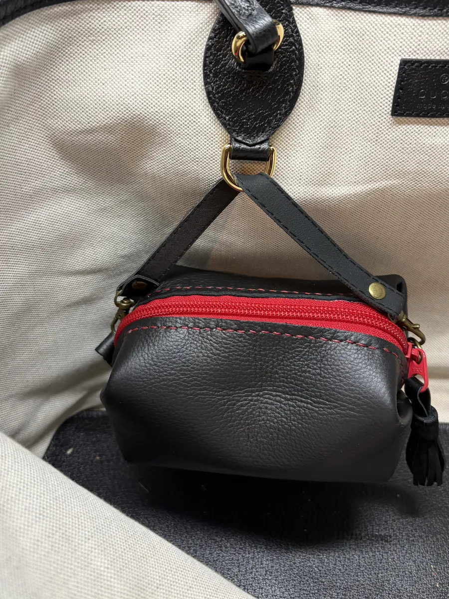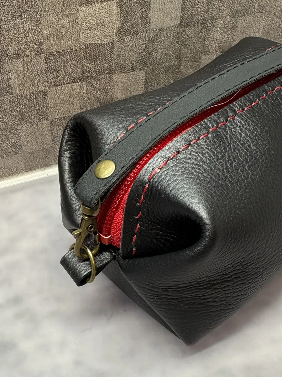 黒のレザーに赤いファスナー、とっても素敵です✨
