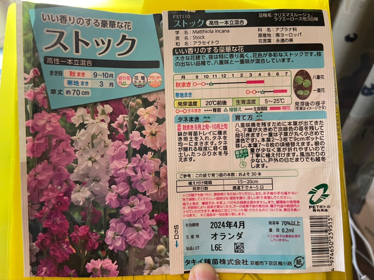 ストックは香りが良いので楽しみですね😊