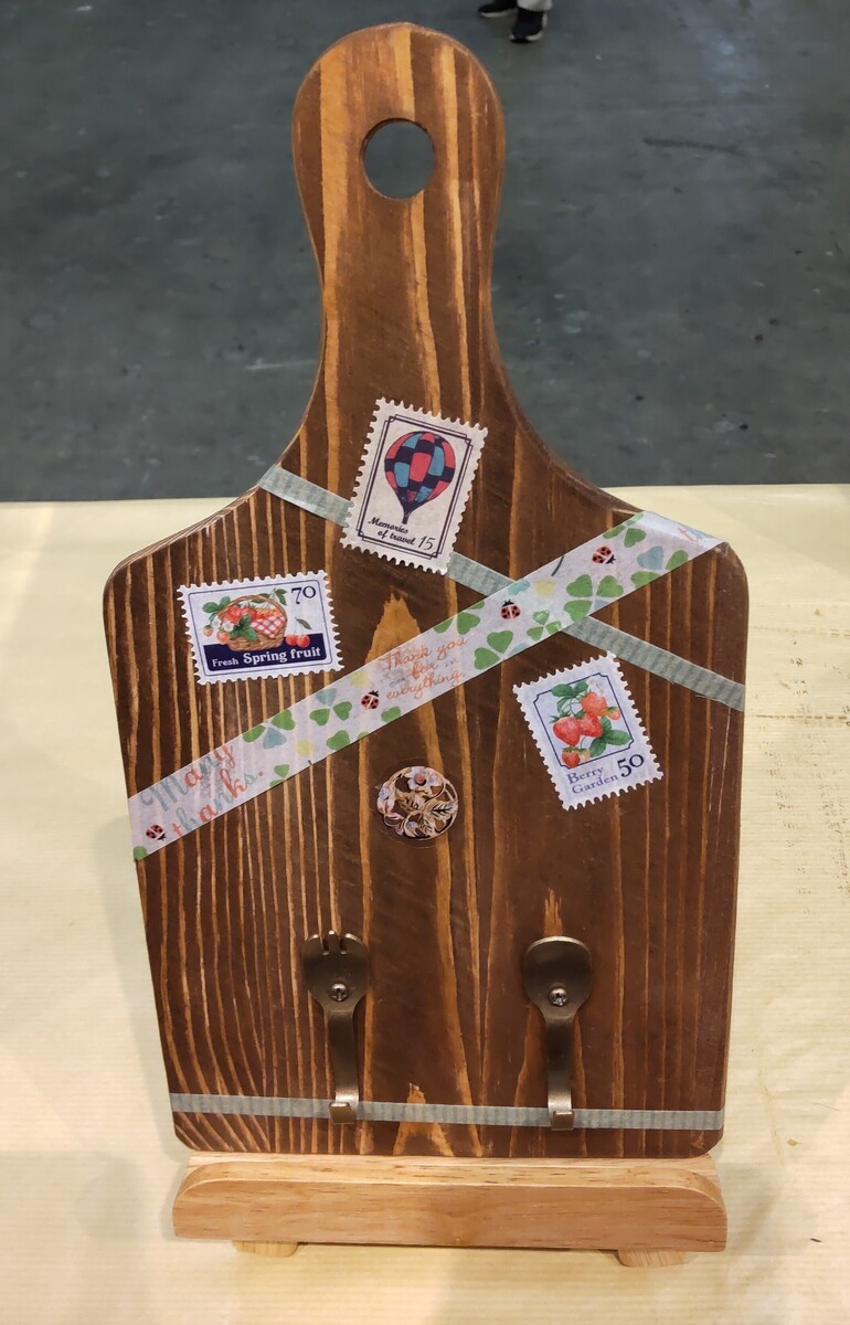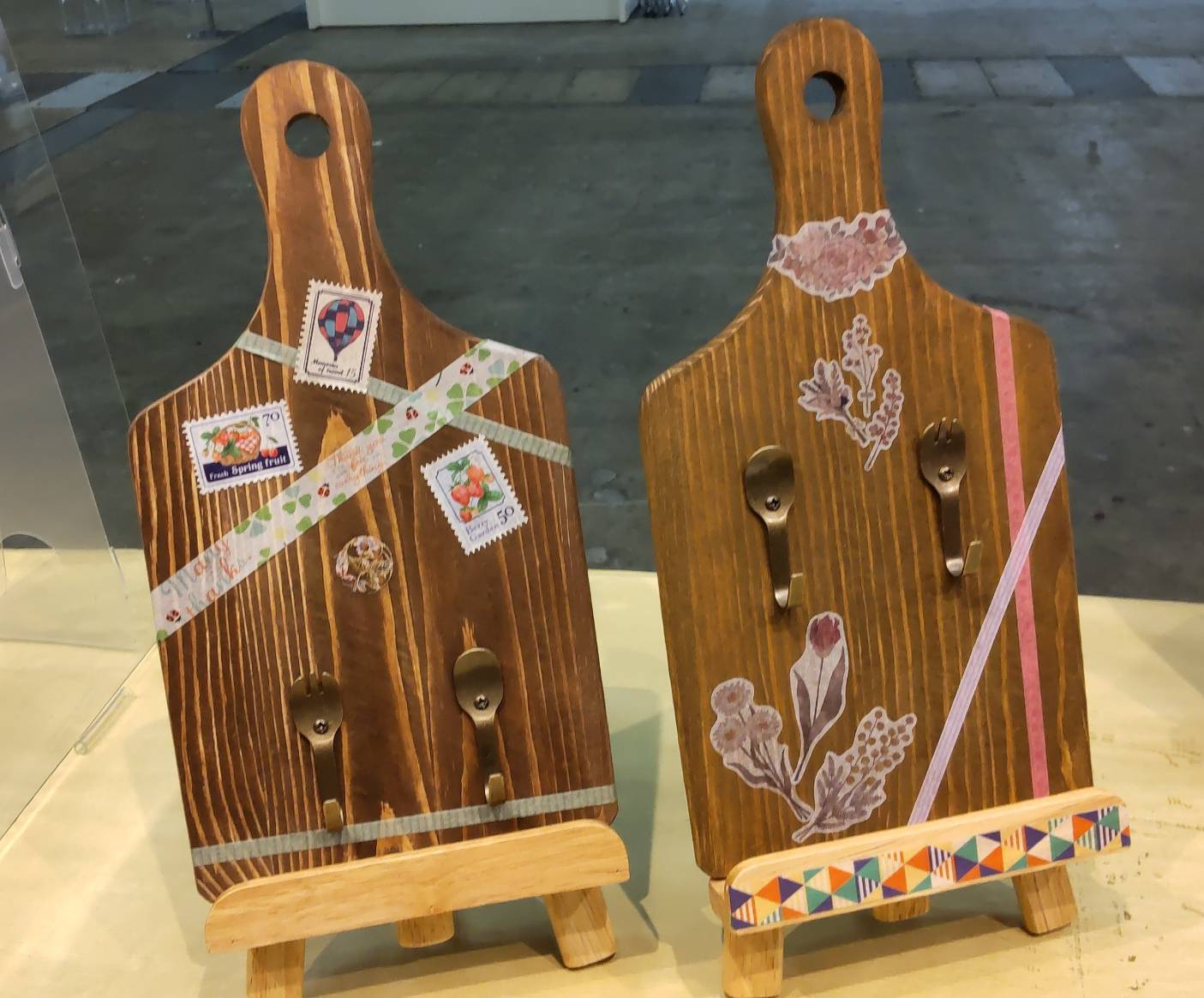 トップ > DIY > インテリア > カッティングボードのスマホスタンド くぅ6233 2022/08/27 21:49 カッティングボードのスマホスタンド KANSAIペイントさんのWSに参加しました 左が私の作品 右が友人の作品です カッティングボードにペーパーステインで塗装していきます 金具を選んで 好きなところに付けます スプーンとフォークのデザインにしました 用意された シールやマステ(どれもかわいい🥰)を貼って台にボンドでくっつけて 完成です 完成品にスマホを 置こうとした友人が スマホが乗らない❗️ と 手帳型のケースを着けてたら無理だと思うのですが…😓 私はスマホではないものに使いましょうかね🙌 いいね 共有する 共有する X LINE リンクをコピー コメントする 1 件の返信 (新着順) ミュートしたユーザーの投稿です。 投稿を表示 ぷりぶり 2022/08/28 08:00 くぅ6233さん ペーパーステイン初めて見ました😳❗しっかり塗装出来て木目もきれいで便利そうですね😍✨ シールや金具もかわいいです💓 私も手帳型のケースなので、のらないかも🤣 でもこのまま飾って置いても充分カワイイ〰️🤭💕💕 いいね 返信する ミュートしたユーザーの投稿です。 投稿を表示 くぅ6233 2022/08/28 08:15 ぷりぶりさん ありがとうございます☺️ 新商品の紹介を兼ねてのWSだったので 500円で 出来ました🙌 お土産に もう一ついただきました🥰 私たち二人 少々せっかちで スタッフさんの説明している途中から ズンズン作業 進めてました🤣🤣🤣 金具を取り替えればスマホケースごと乗りますね👌 いいね 返信する