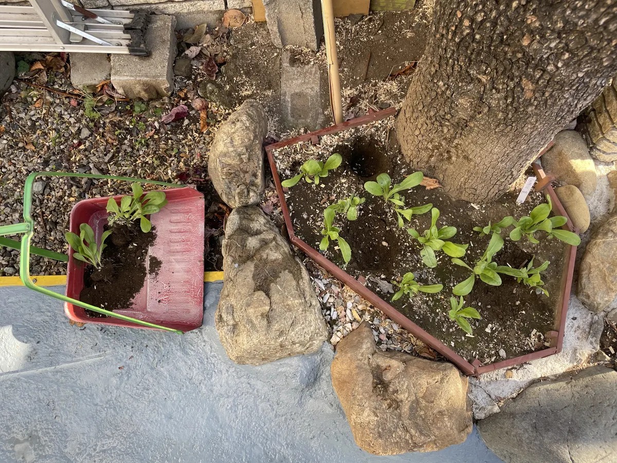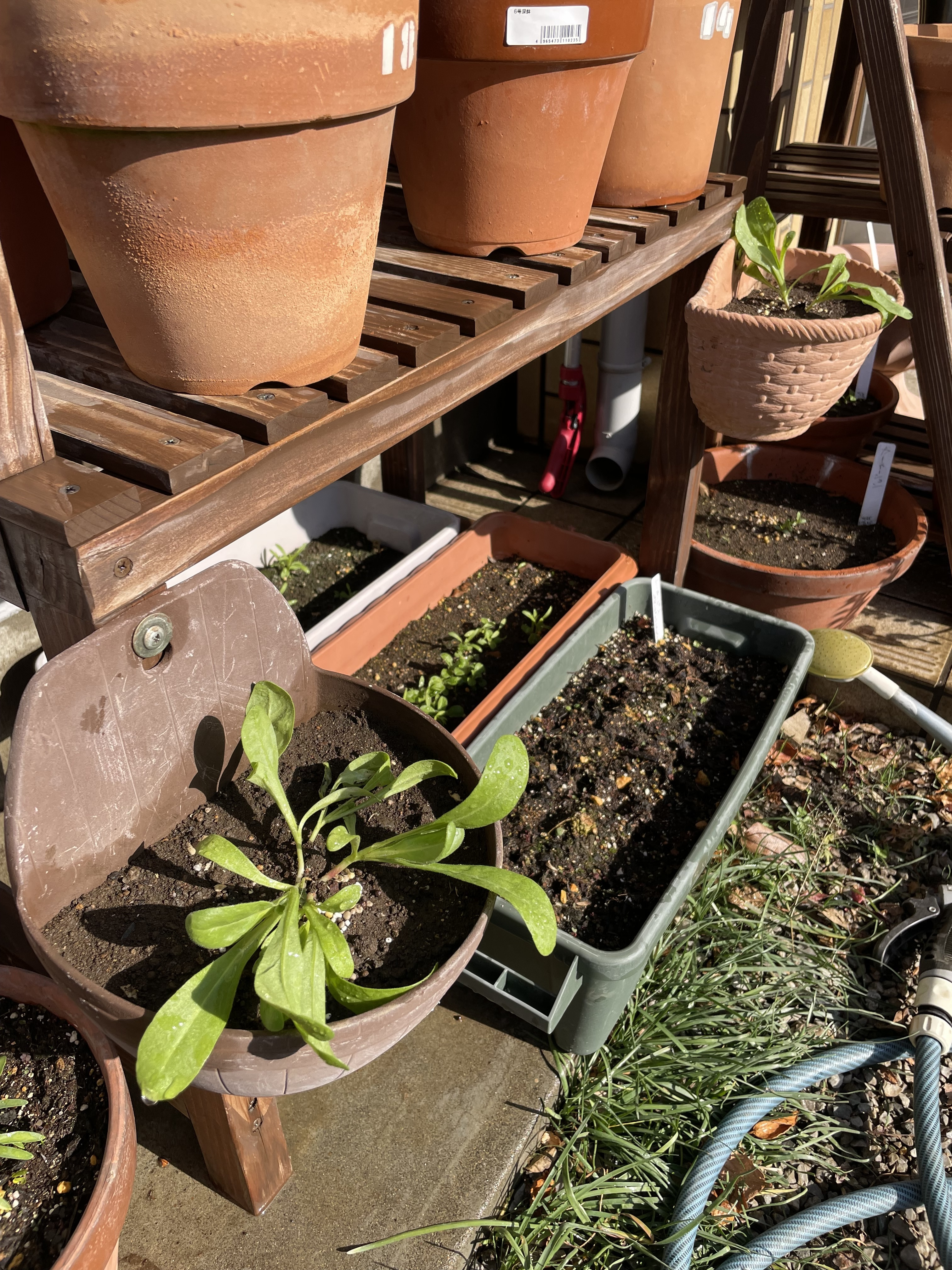 10月に花壇に種蒔きした金盞花(リンク→ https://diy-square.cainz.com/announcements/nk1g1299qmcxaie4 )してた2株を鉢上げしました。