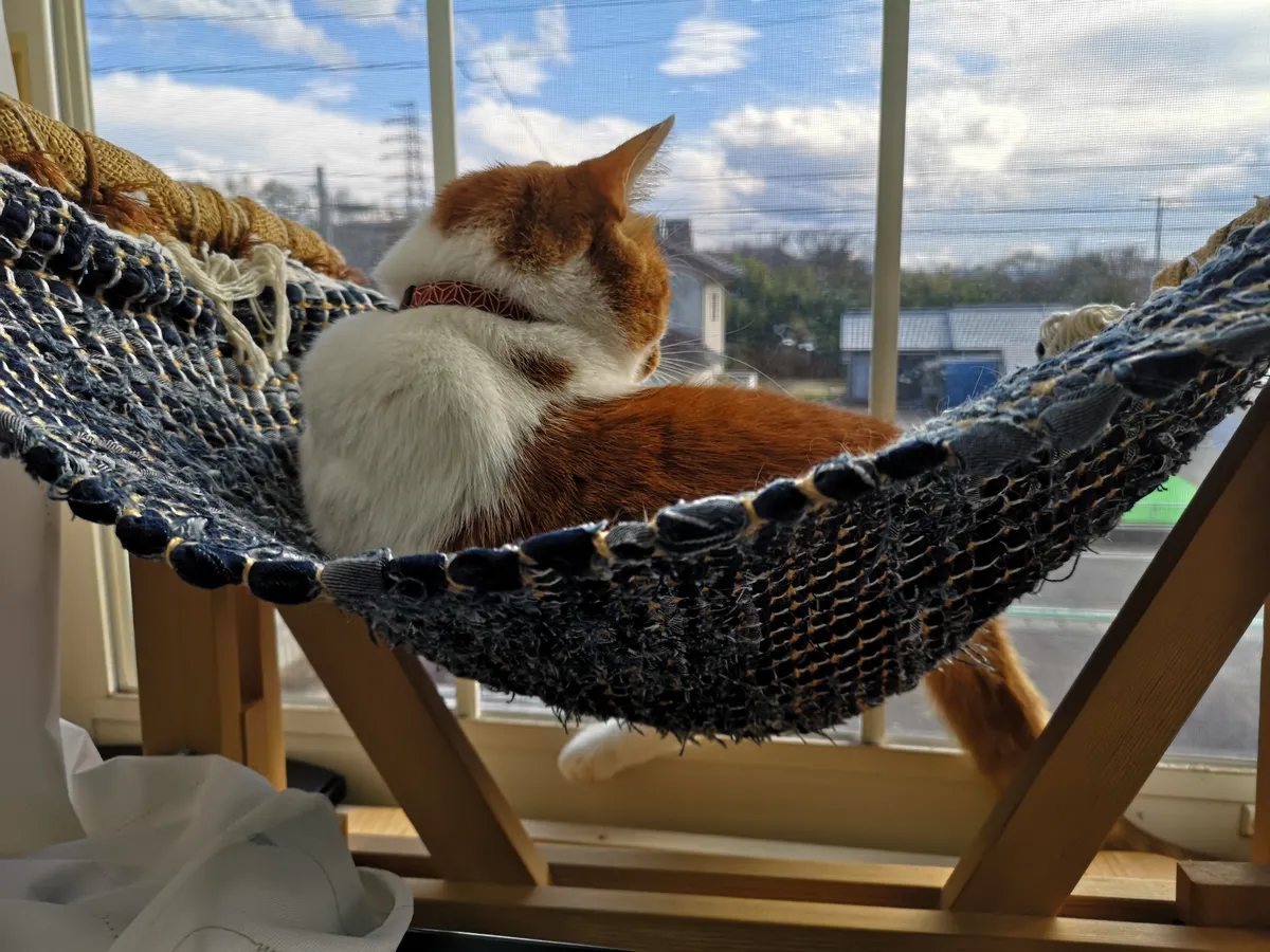 投稿を表示おニューのハンモックでしっかり寛いでますね。眺めも良さそうです。😄