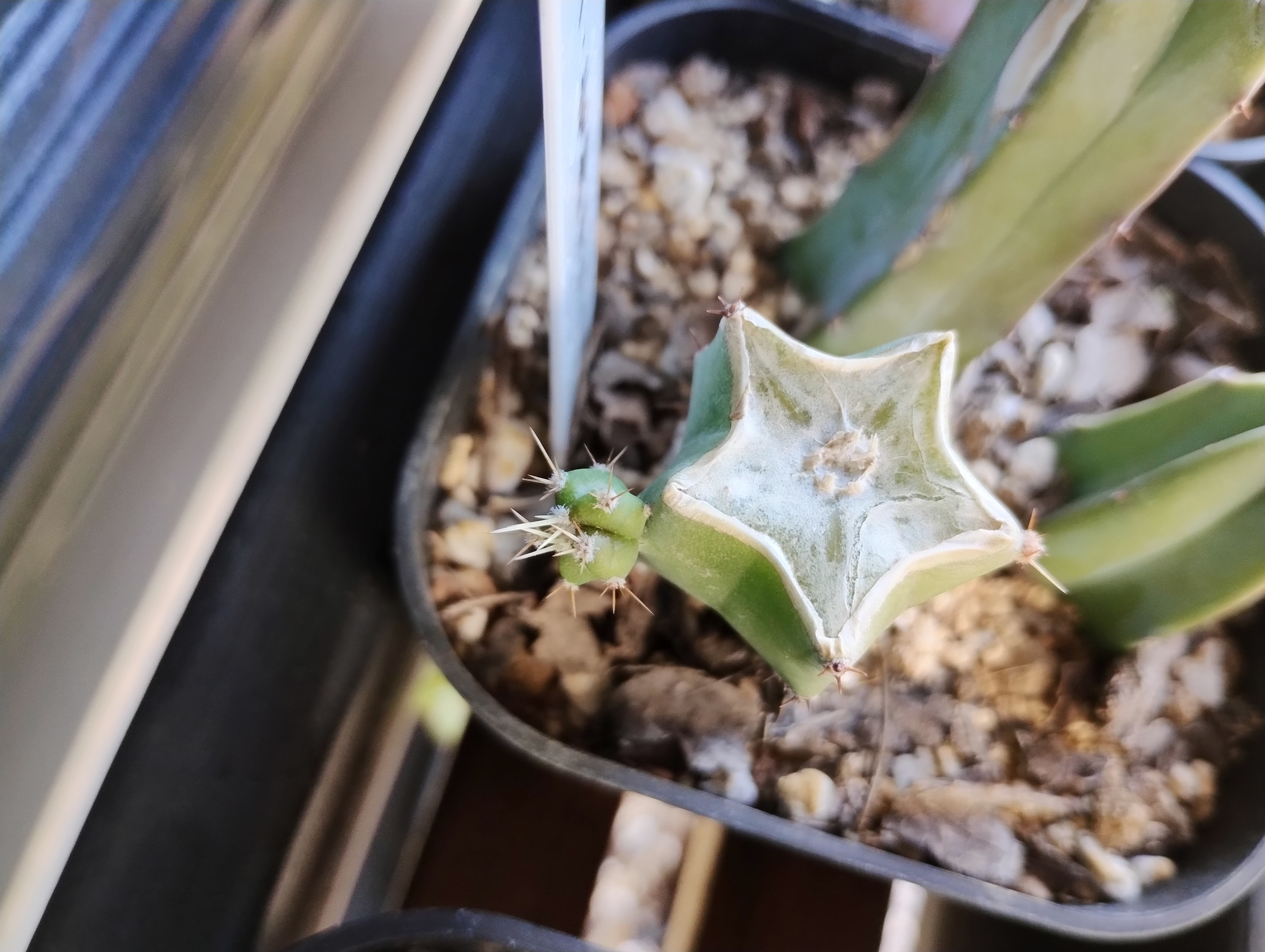 柱サボテンを胴切りしてからやっと子柱サボテンが成長してきました!