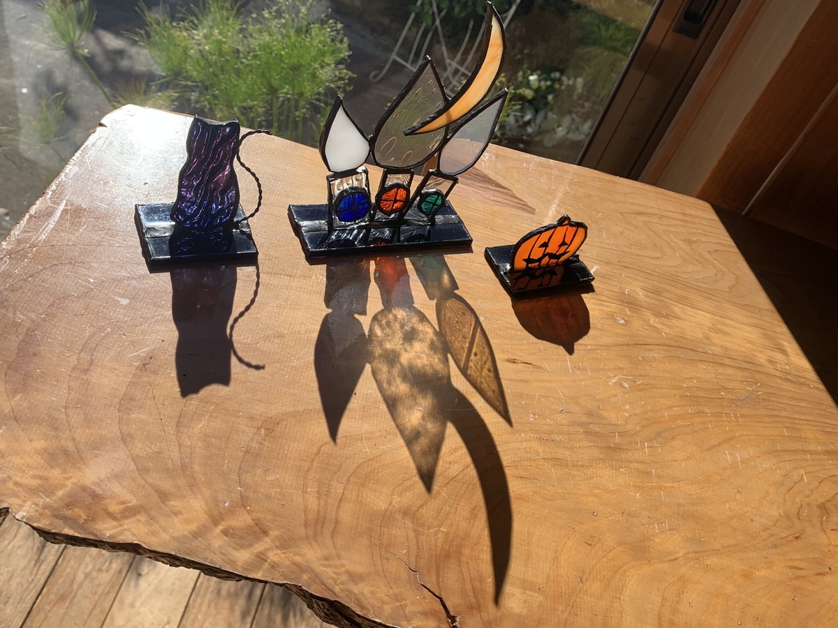 投稿を表示ステンドグラスのハロウィンシリーズ、素敵💕。影にも薄く色が映って…いよいよ明日がハロウィンですね🎃。