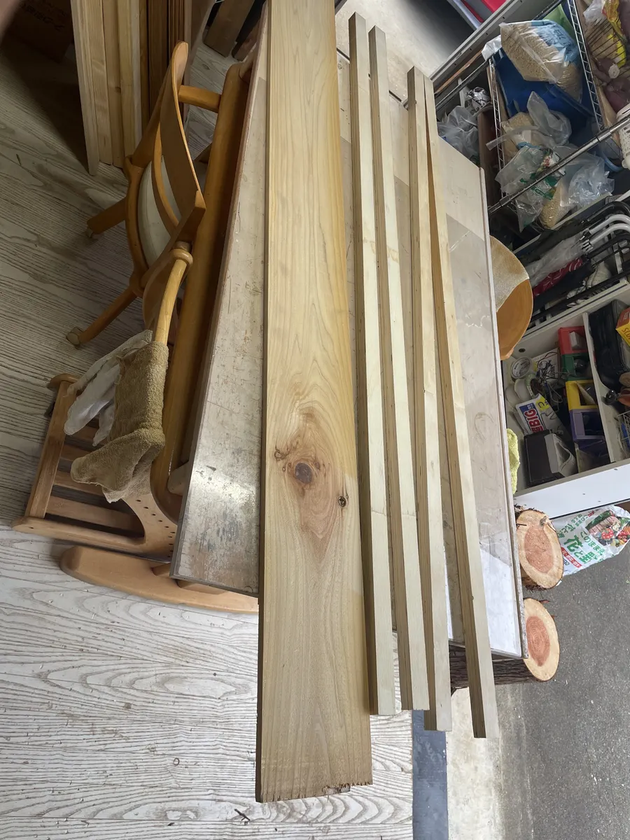 平たい板を4枚(端材で長さの短い板を2枚追加の合計6枚)ほど使いました。