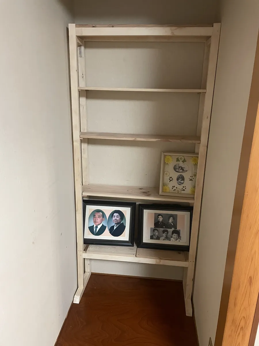 一番下の板は余っていた材料を使ったので空間が開いています。