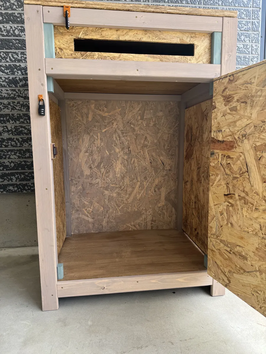 投稿を表示全体的に素晴らしいですが、扉の角がぴったりで気持ちいいですね。宅配に来た方も色んなボックス見てるでしょうから、これは市販じゃない、オリジナル凄いって思うでしょうね🚚