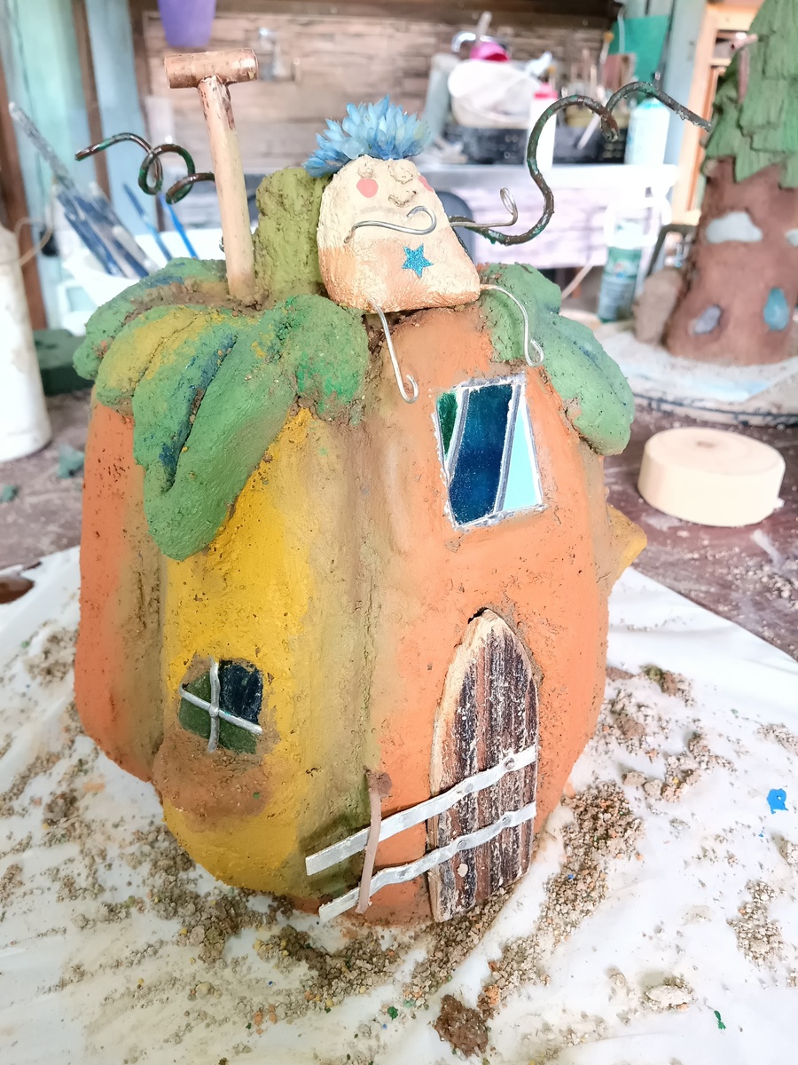 扉や窓もつけてカボチャのおうちにしました!