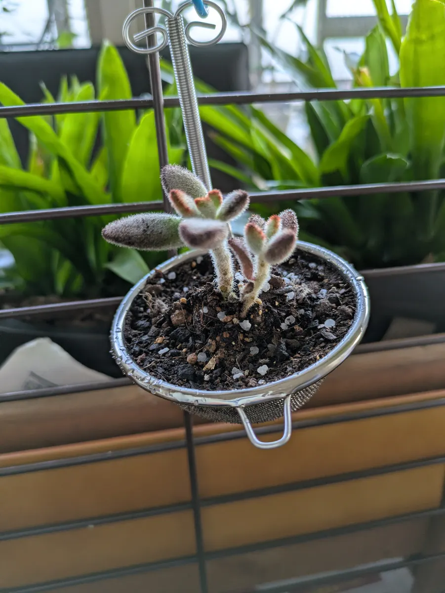トップ > グリーン > 多肉植物・サボテン > 茶こし多肉(黒兎) DIY野良猫 2025/11/16 04:35 茶こし多肉(黒兎) 時間つぶしに寄ったお花屋さん 「ねぇ〜 ねぇ〜」 小さい声に引き込まれてしまいました😽 あまりにも小さくて そぉっと、そぉっと❣ (車🚙のブレーキもそぉっと❣そぉっと❣) 一緒に帰って来ました😸 小さくて小さくて、どうしようかしらと、 手のひらに乗せたまま ウロウロ、ウロウロ〜🐾 新品の茶こしを発見👀 柄の部分を曲げて引っ掛けられるように。 黒兎さん、新居はどうかしら😺 多肉作品部門【2025】 小さい秋見つけた いいね 共有する 共有する X LINE リンクをコピー コメントする 1 件の返信 (新着順) ミュートしたユーザーの投稿です。 投稿を表示 べるん 2025/11/16 09:21 茶こしの風通しも良くて、快適そうですね💚 取っ手もあるので、吊り下げられるのも良いですね~🎶 いいね 返信する