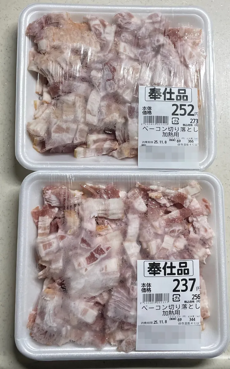 ちなカットベーコンもお値引き品じゃないけど69円/gの奉仕品で安っ🤣🙌🥓👛✨