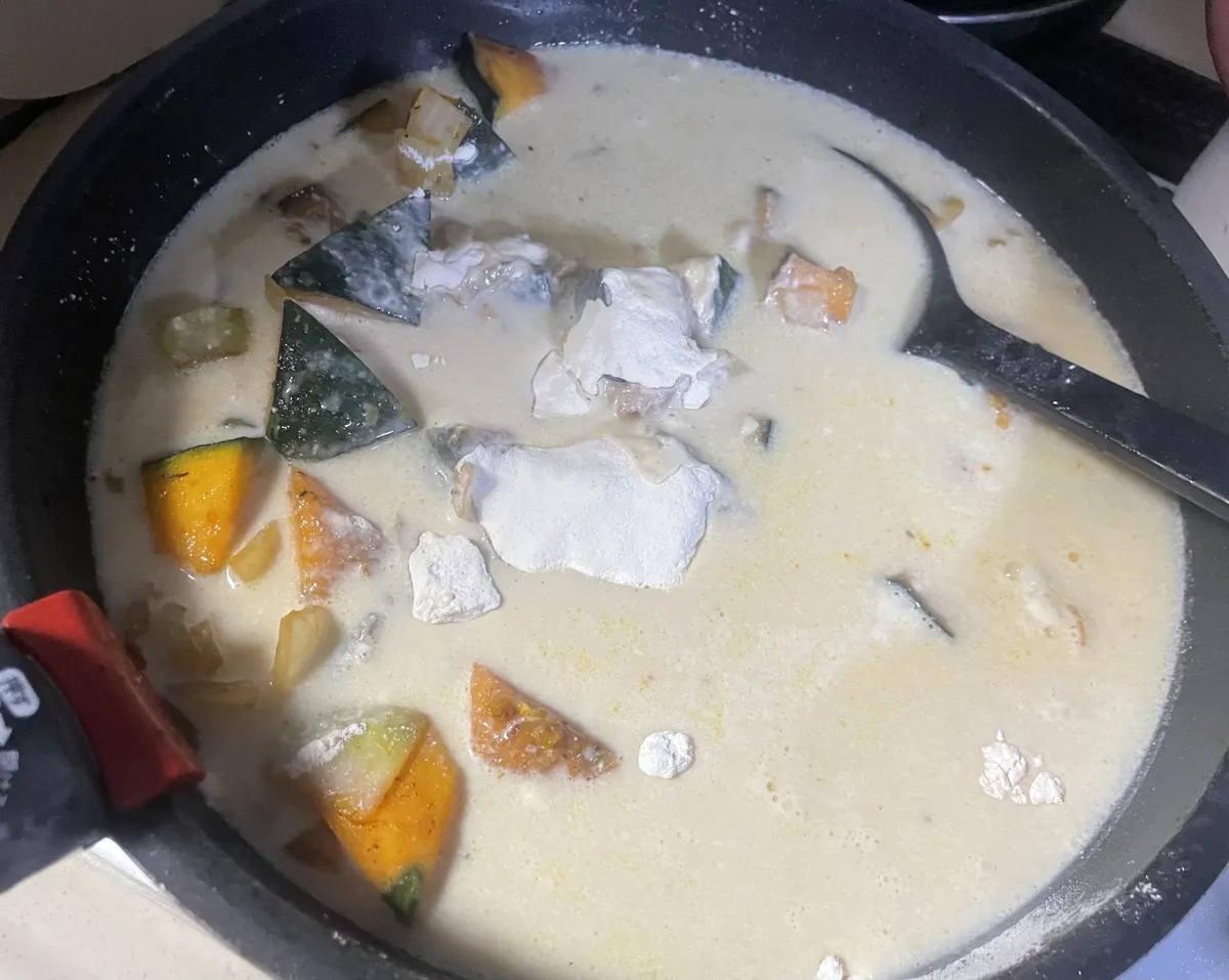 ・記載されとらん火の通り難い南瓜使ってるので、マカロニ入れるタイミングまでの煮時間はチト多めに取るよぉ〜🫡⏰🎃🍳🔥✨