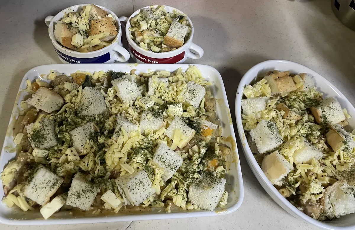 1番デカいので作ったパングラタンを初日は家族3人で取り分けて頂いたよぉ〜😋🧑🦲👩🏻🦍🥄✨