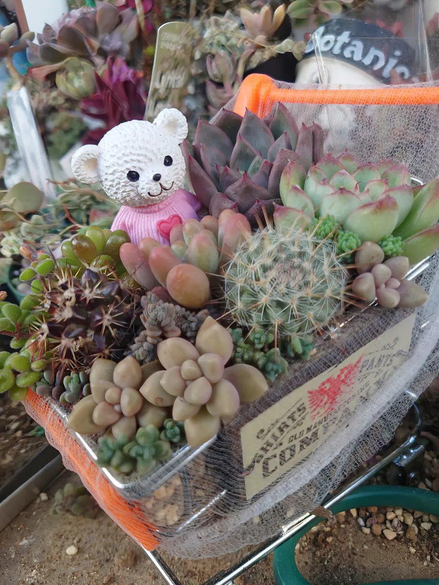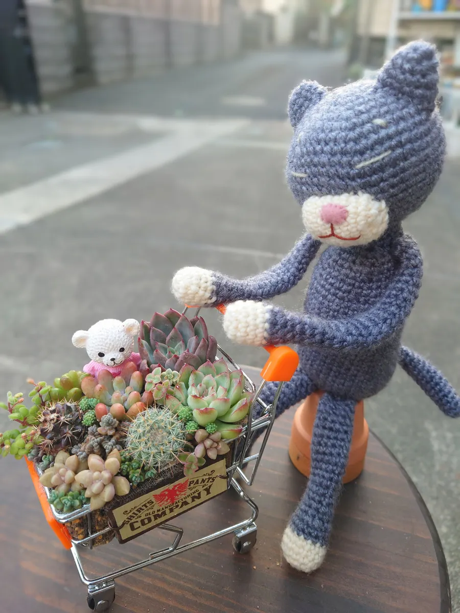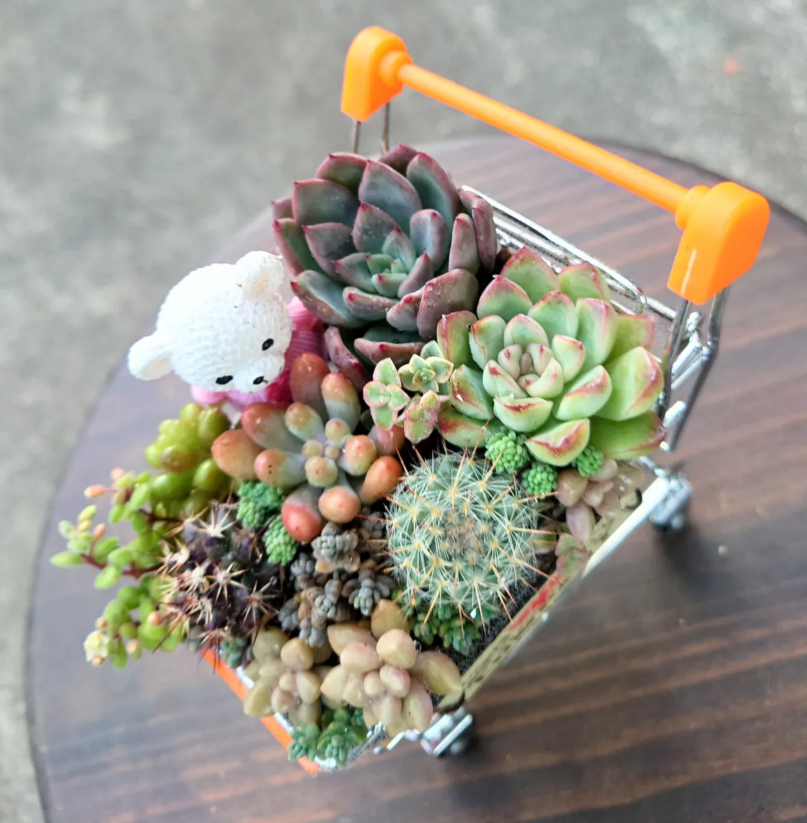 100均で見つけたミニサイズのショッピングカートに寄植えしました