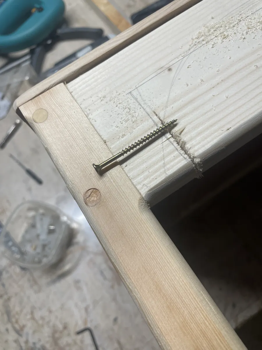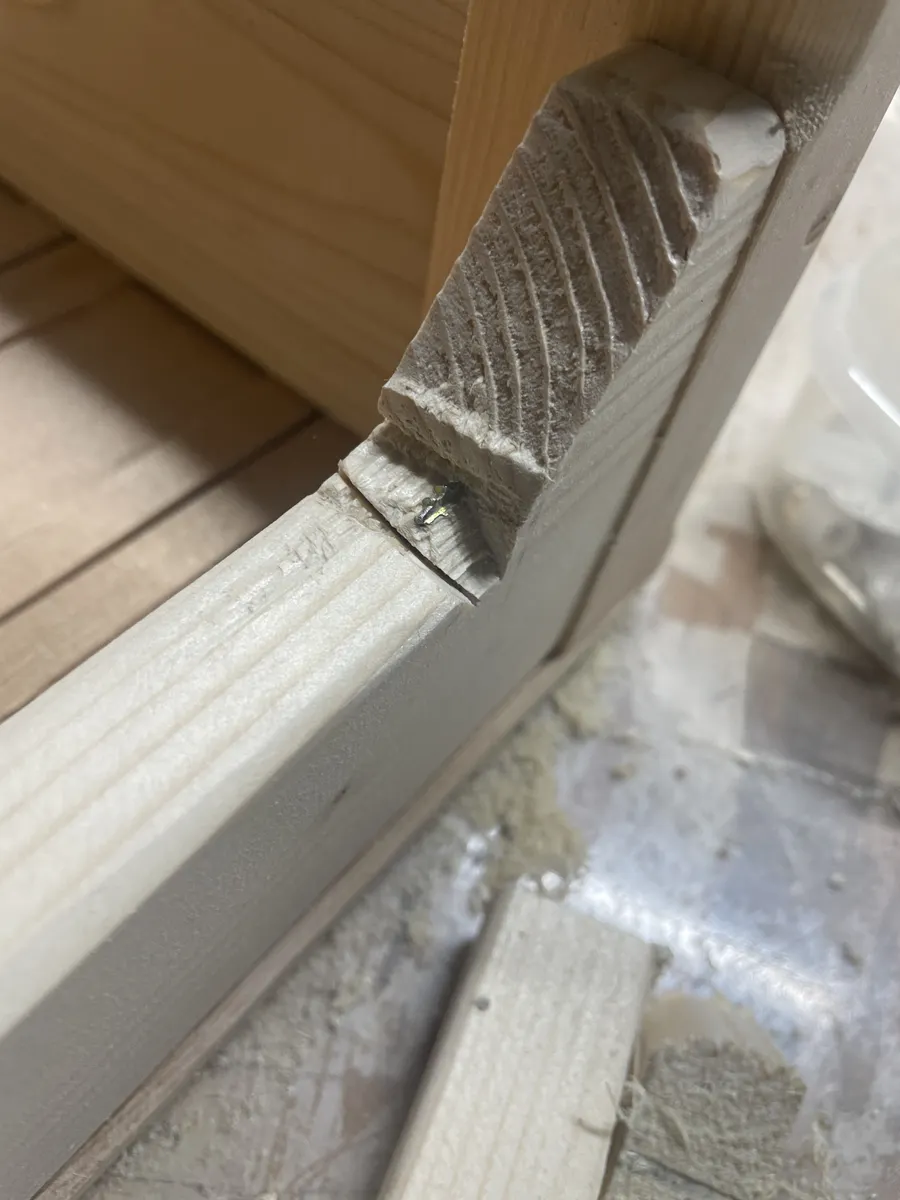 組み上がってる物に刃物を入れる時はビスの深さも気を付けないとだよねぃ😂🔩💦