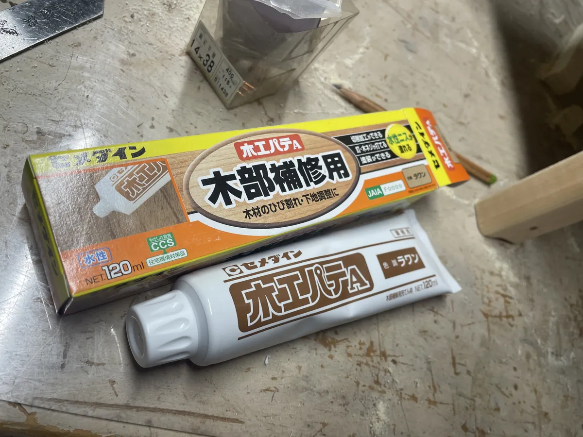 今までは木工用ボンドに木屑をコネコネして使ってましたが塗料が乗りにくいこともありこちらの木工用パテを購入してみました。