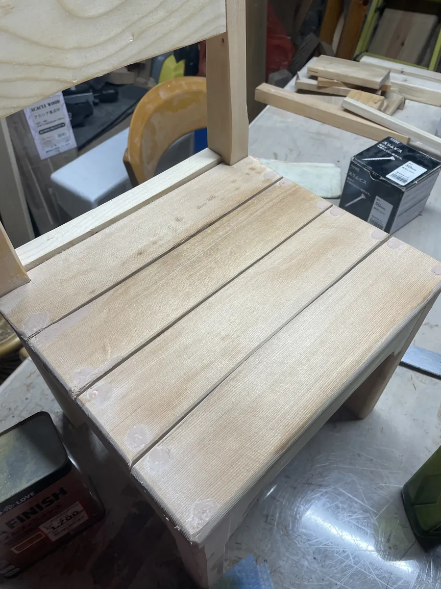 完成!今回の座面の板を別の板に張り替えようか何度も悩みましたが