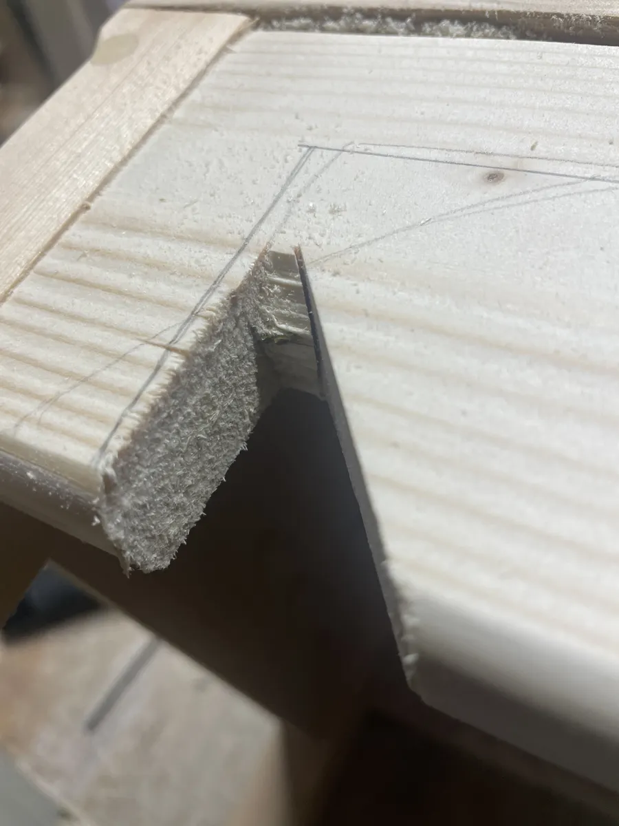 (繰り抜いた方の材拡大して貰えると判るとおり、罫書線丸無視のガタガタカット🤣🪚🆖💦)