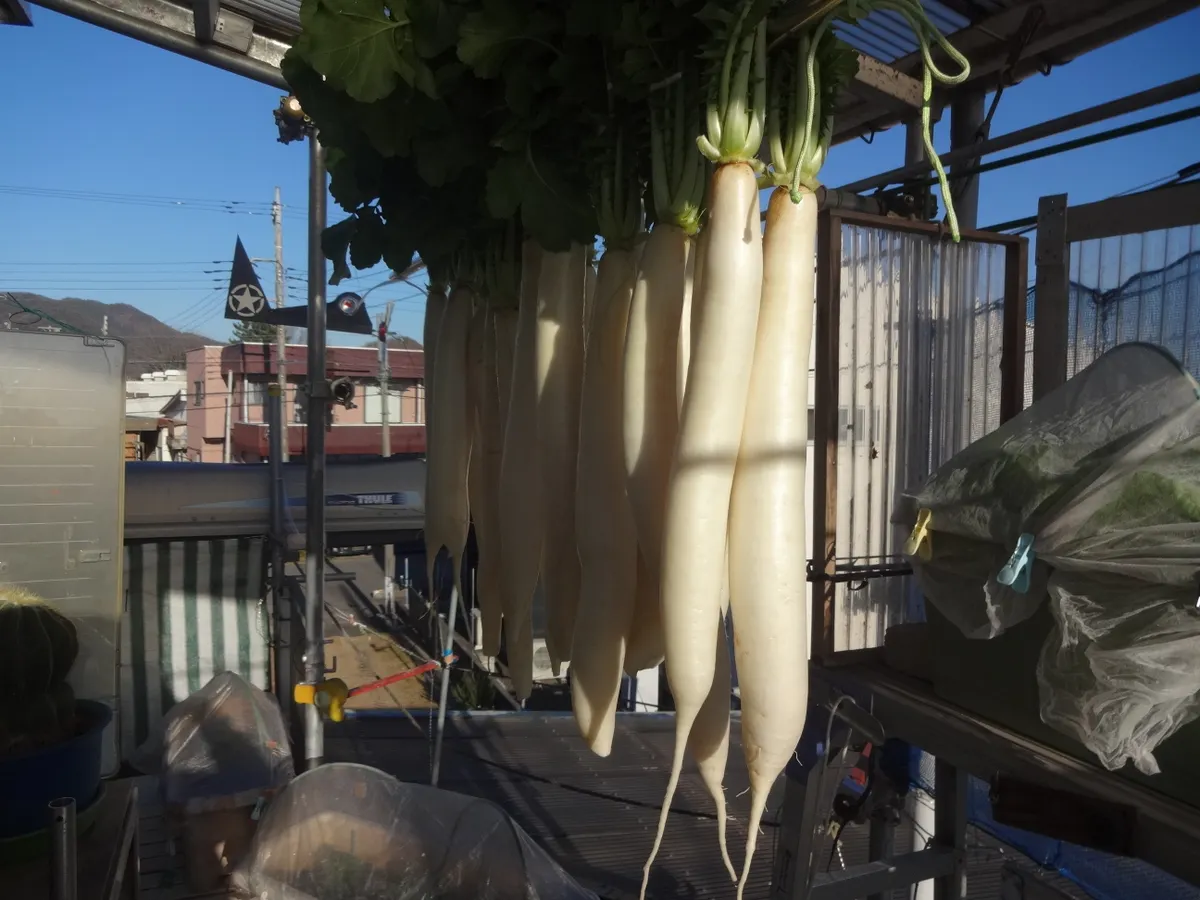 トップ > 秋冬家庭菜園2025 > キャンペーン > 大根干し リホ-ム人 2025/12/16 15:11 大根干し 練馬系の 漬物専用大根 20本 干しました。あと 畑に 残20本程は沢庵には せずに 春にかけて チョロチョロです。 周辺はプランタ-だらけ で ごめんなさい。 ↓ 昨年より今年の方が出来が良いです。10日程 干したら漬け込みます。 沢庵が出来上がっても そのままでは1本も食べません。 全て冷凍し、1年かけて 炒め沢庵(塩抜きして)として 保存食です。 いいね 共有する 共有する X LINE リンクをコピー コメントする 2 件の返信 (新着順) ミュートしたユーザーの投稿です。 投稿を表示 チコリ 2025/12/17 02:03 立派な大根! 沢庵って自宅で作れるんですね、すごいです😳 炒め沢庵のレシピ、保存させていただきました🎶 市販の沢庵で作ってみます😁 いいね 返信する ミュートしたユーザーの投稿です。 投稿を表示 リホ-ム人 2025/12/17 07:44 チコリ ありがとうございます。今朝、0度まで冷え込みました。干してる間に凍ると腐ってアウトです。 屋根の下でも夜間は 保温シートで覆います。 編集ミスで消えてしまい再度載せました。下記です。 レシピ です。 https://diy-square.cainz.com/announcements/wvyekyyc3k5kkh5l いいね 返信する ミュートしたユーザーの投稿です。 投稿を表示 ミモザ 2025/12/16 18:54 憧れの沢庵漬けです😊 美味しいのができそうですね💖 いいね 返信する ミュートしたユーザーの投稿です。 投稿を表示 リホ-ム人 2025/12/16 19:55 ミモザ ありがとうございます。 今晩も 食べました。 8/14 男料理 で作ったものです。 https://diy-square.cainz.com/announcements/wvyekyyc3k5kkh5l いいね 返信する