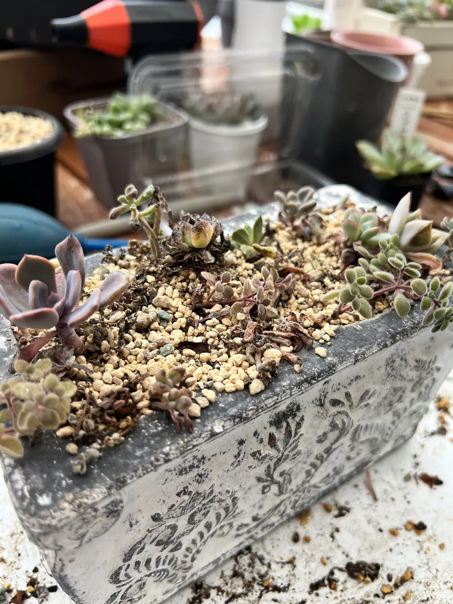 トップ > グリーン > 多肉植物・サボテン > モルタル鉢のお直し♡ さくら♡ 2025/10/13 09:52 モルタル鉢のお直し♡ 年季の入った、大好きなモルタルプランターも猛暑で酷いことに💦 お直し前!全部抜いて、土を足してチマチマ。 黄色のセダムを入れると引き締まりますね😊 いいね 共有する 共有する X LINE リンクをコピー コメントする 2 件の返信 (新着順) ミュートしたユーザーの投稿です。 投稿を表示 yuco 2025/10/13 18:34 よみがえりましたね〜💕 とってもかわいい😍 いいね 返信する ミュートしたユーザーの投稿です。 投稿を表示 さくら♡ 2025/10/13 18:44 yuco ありがとうございます😊 もうね、ヒドいことになってましたよ笑🤣 いいね 返信する ミュートしたユーザーの投稿です。 投稿を表示 28`sガーデン 2025/10/13 10:35 素敵ですね〜 うちにもかつては綺麗だった多肉ちゃんがいます。 ちゃんと植え直してあげたいです。 いいね 返信する ミュートしたユーザーの投稿です。 投稿を表示 さくら♡ 2025/10/13 11:21 28`sガーデン もう、焼け野原がたくさんあり過ぎて どれから手を付けたらいいのやら笑🤣 いいね 返信する ミュートしたユーザーの投稿です。 投稿を表示 はっちゃん 2025/10/14 10:03 さくら♡ 素敵 いいね 返信する